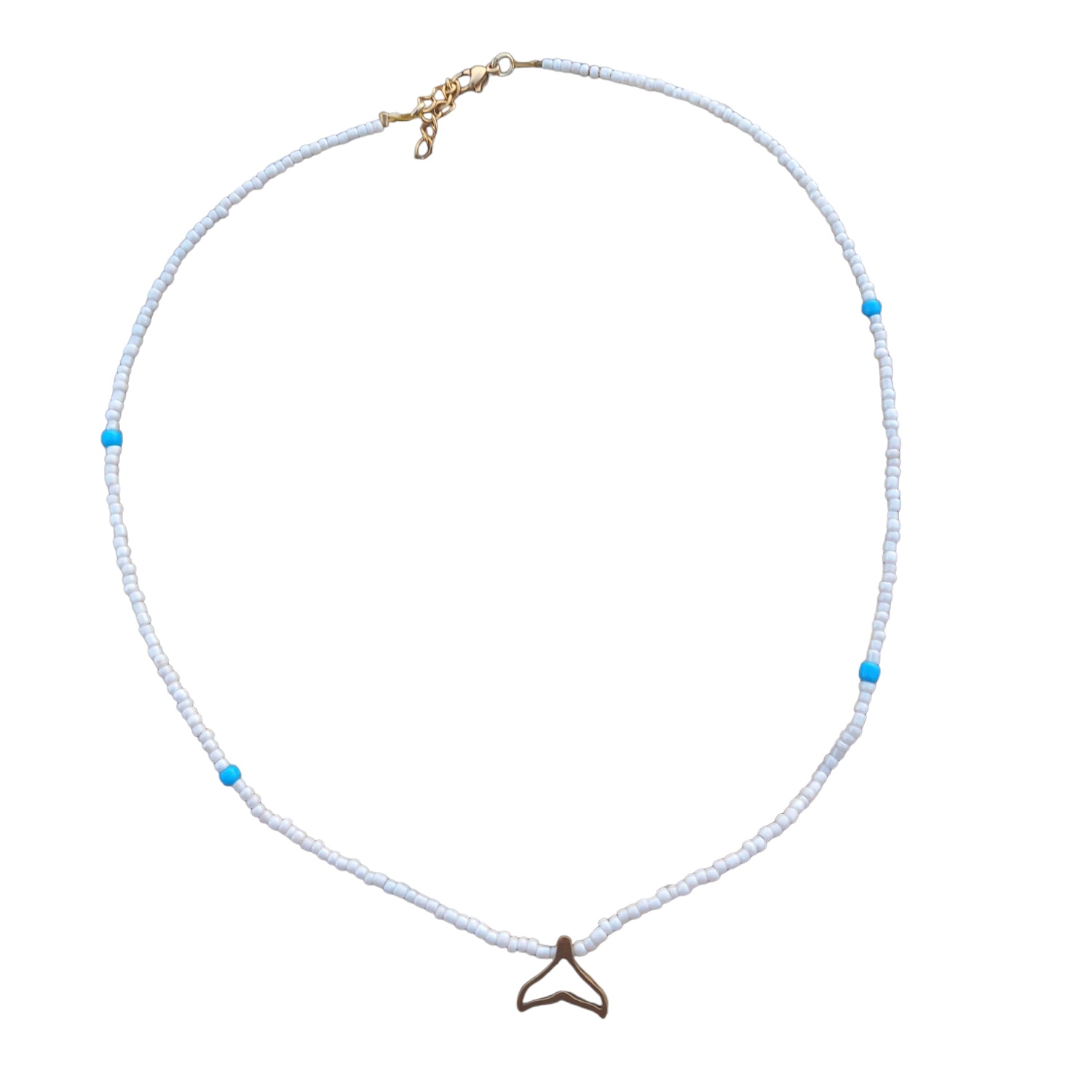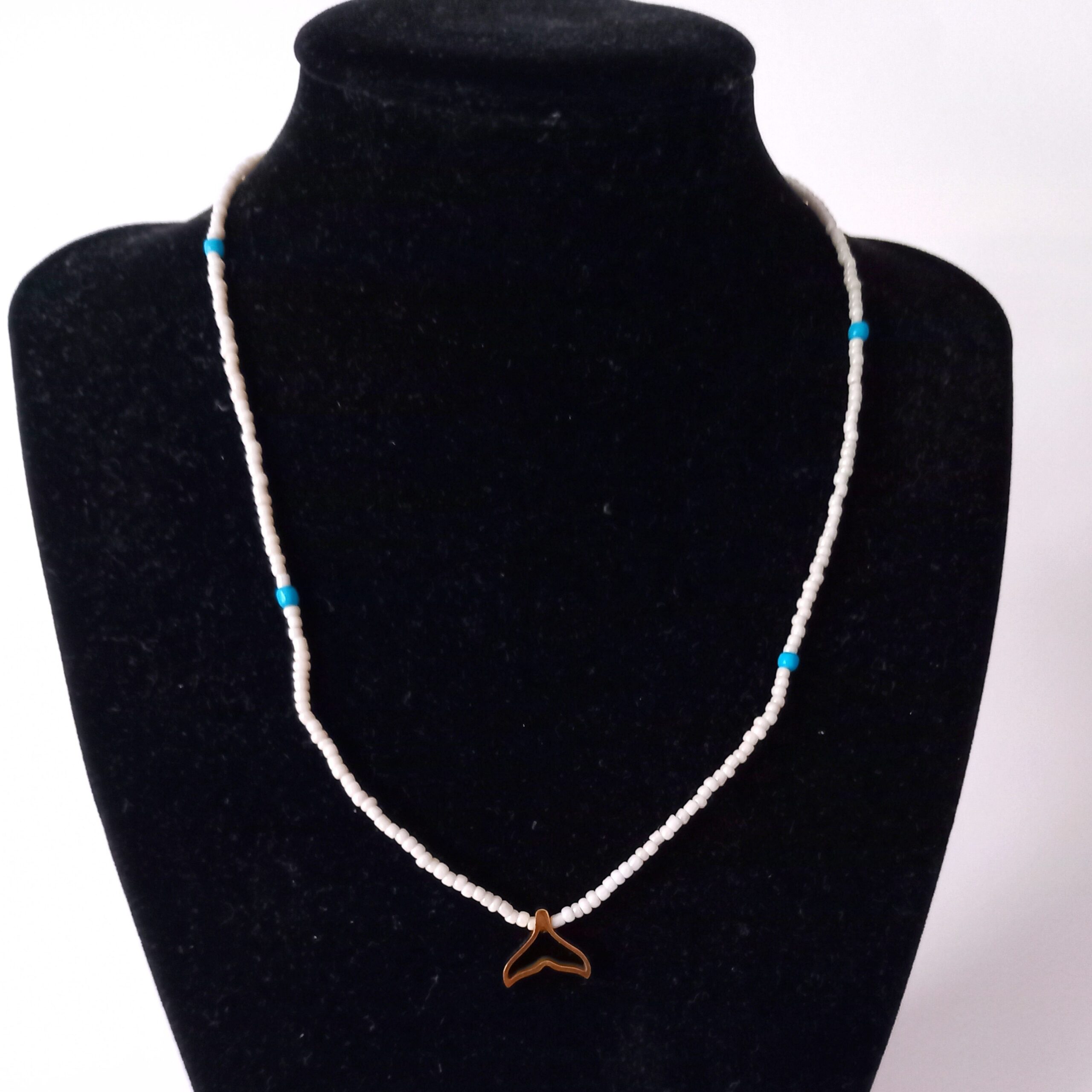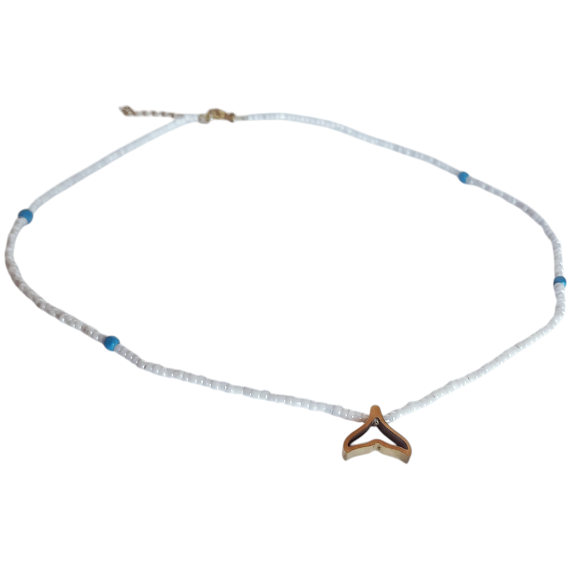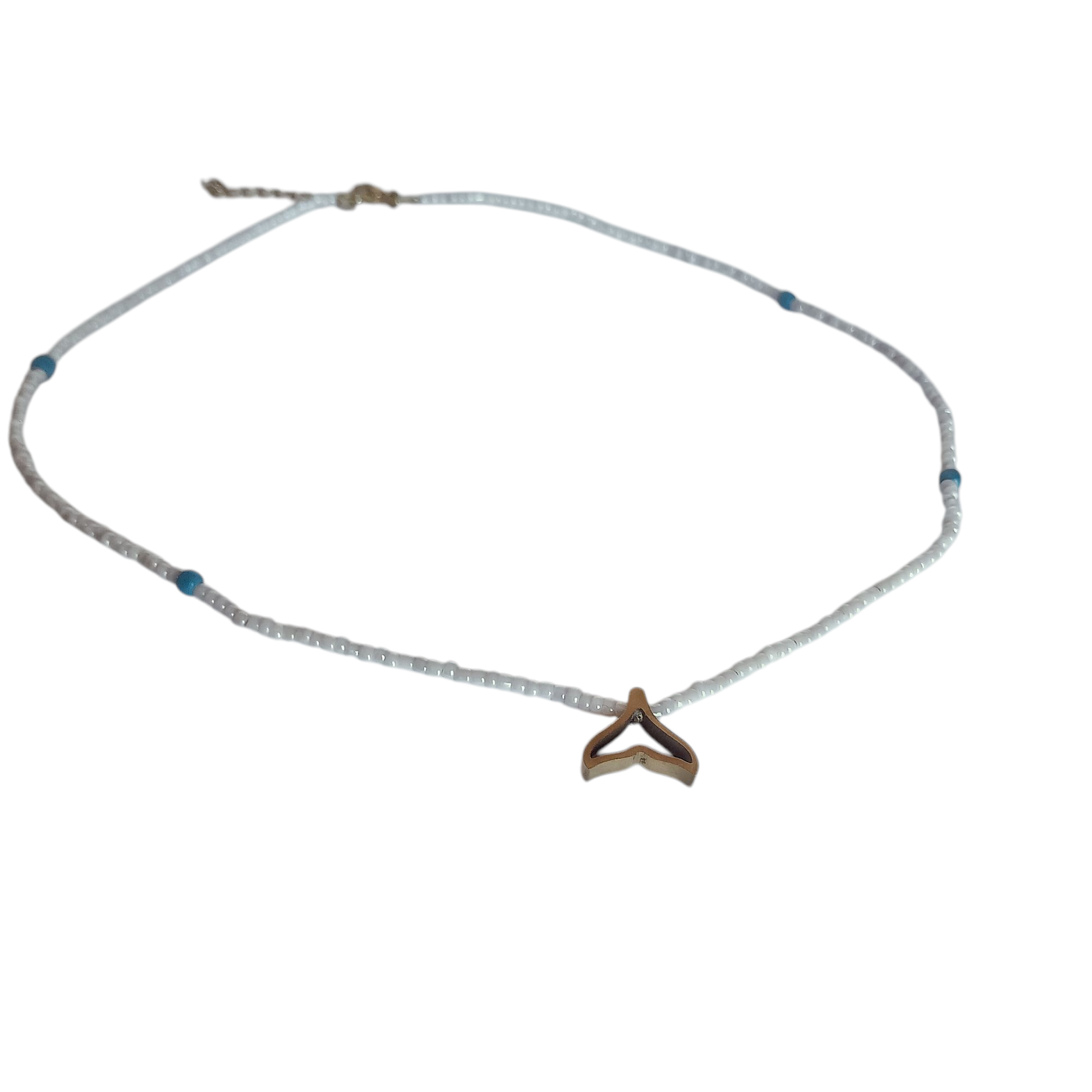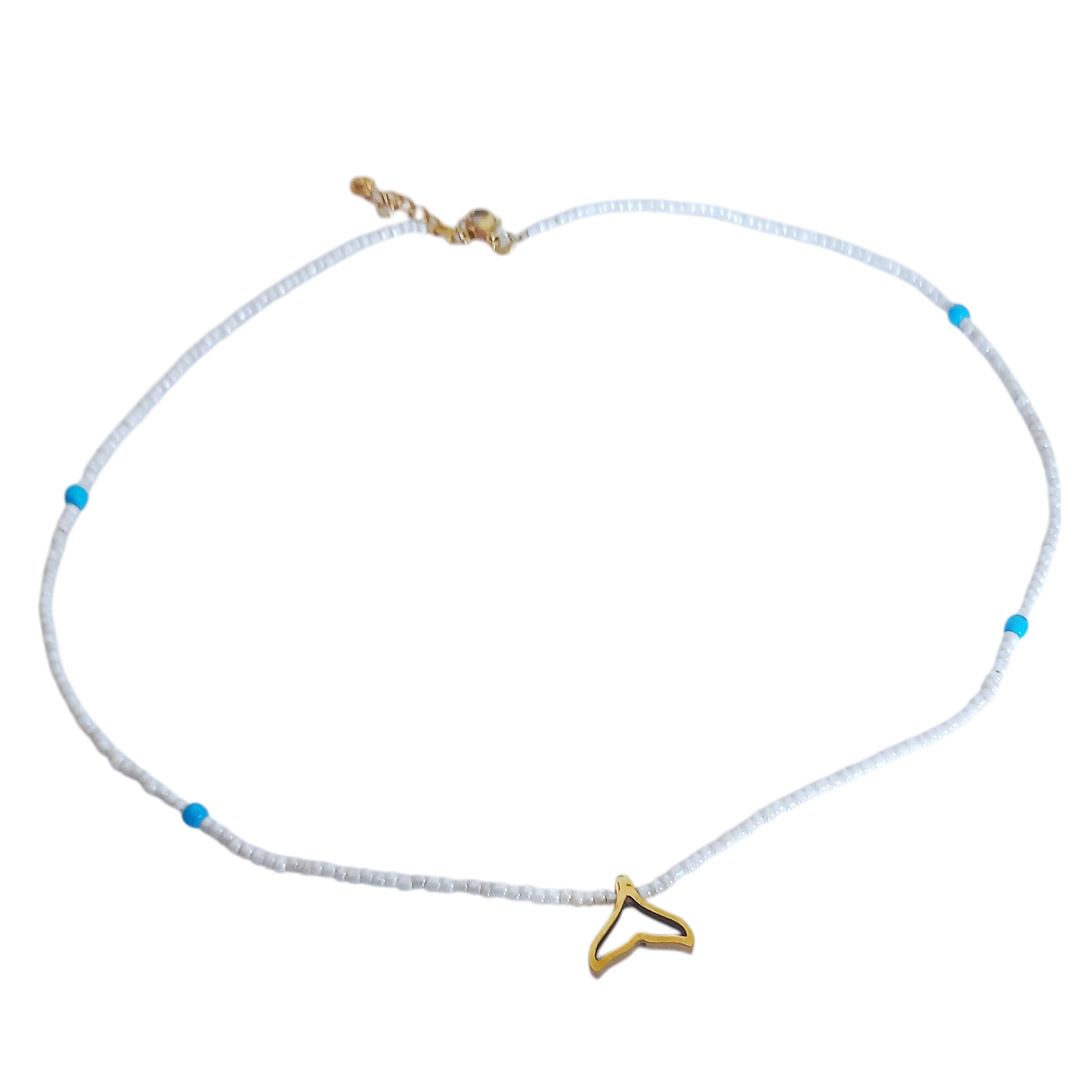 Κοντό χειροποίητο κολιέ με ατσάλινη ουρά φάλαινας και πέτρες. Κουμπώνει με ατσάλινο καβουράκι και ατσάλινη αλυσίδα αυξομείωσης.