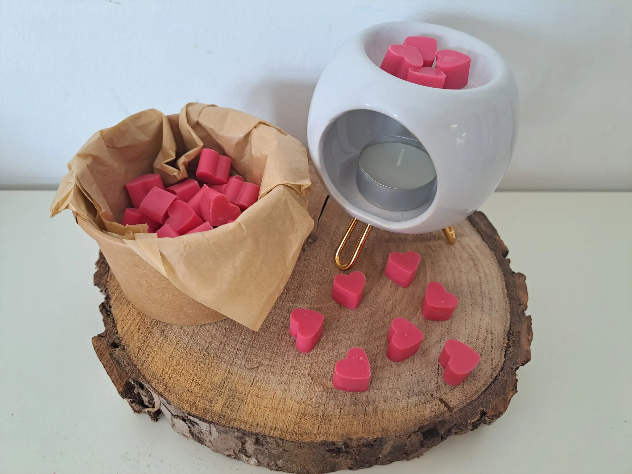 Σετ κεραμικος αρωματιστης και φυτικά wax melts σε σχήμα καρδιάς και αρωμα “φράουλα “.