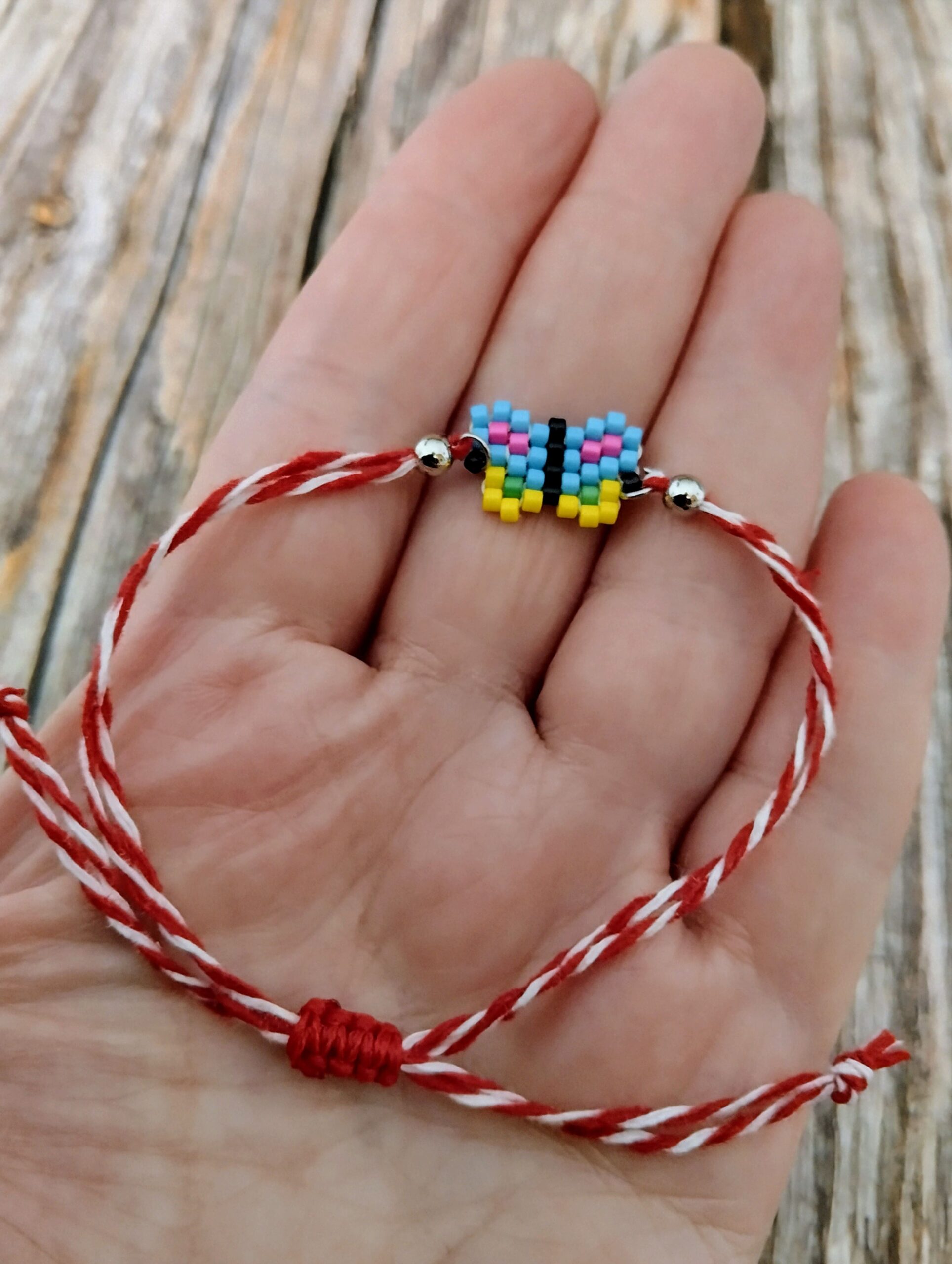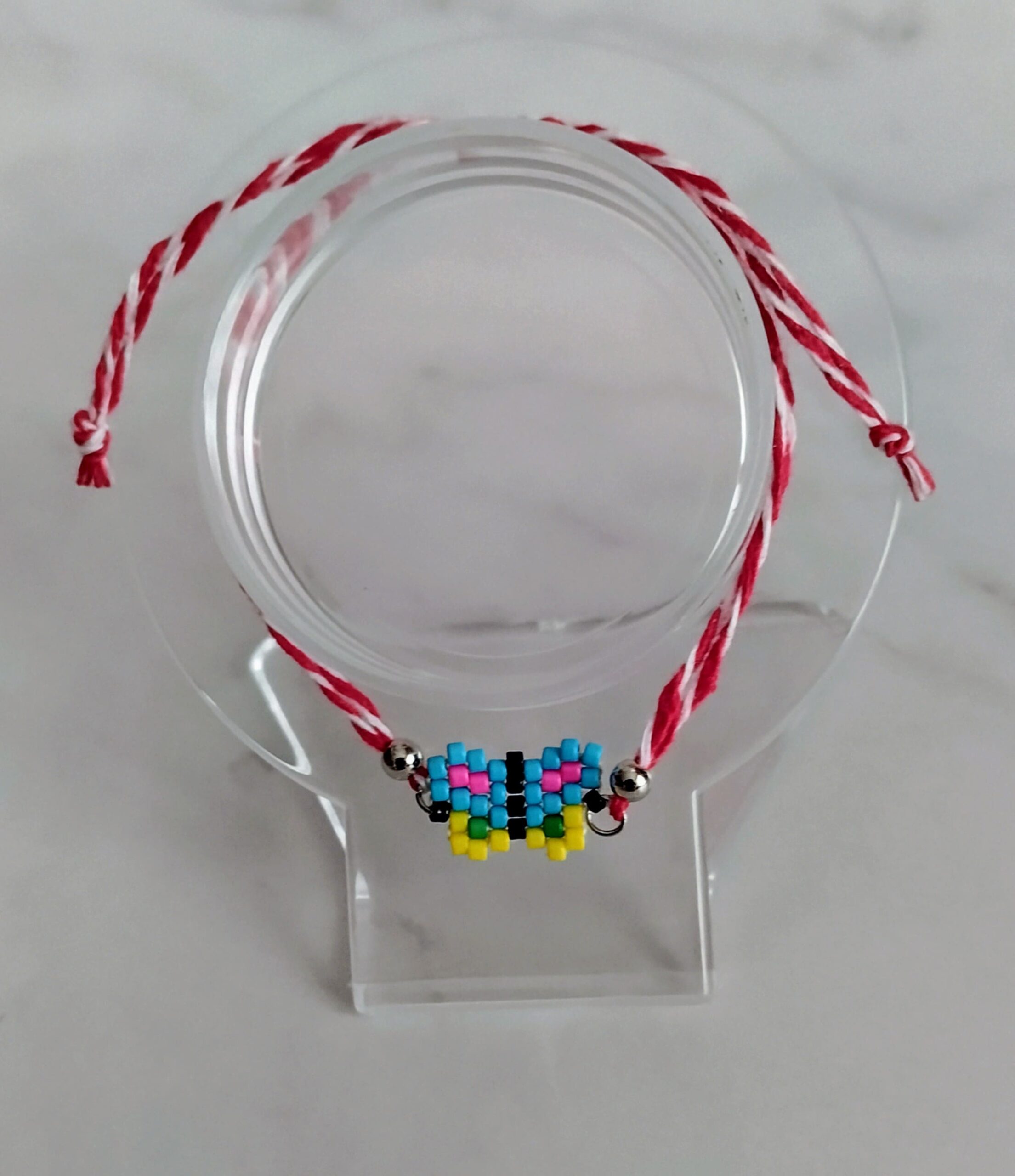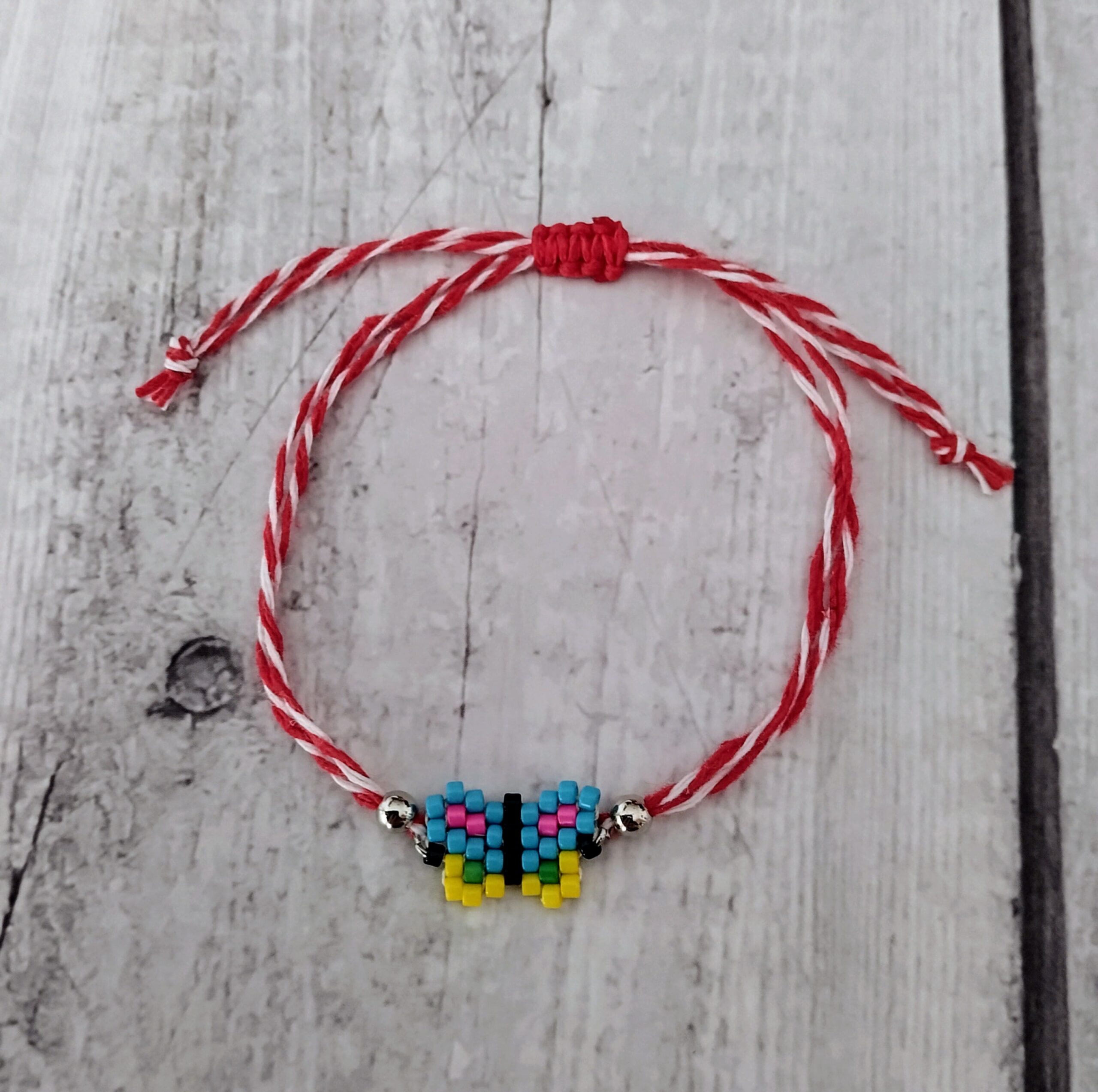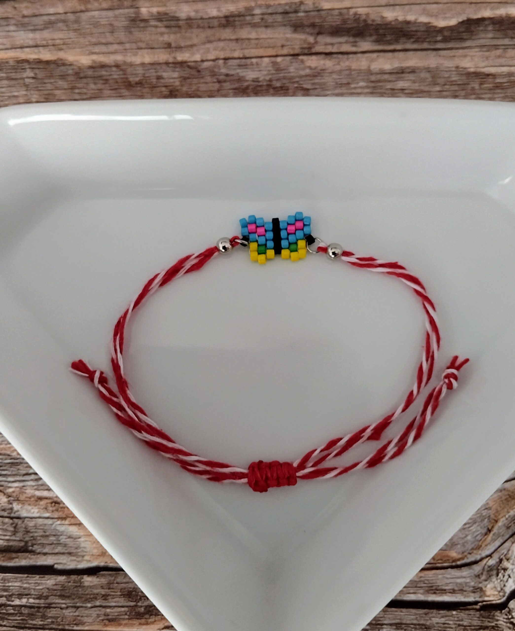 Είναι πολύ χαριτωμένο, με χάντρες miyuki σε όμορφα φωτεινά χρώματα, που θα στολίσει τον καρπό σας ακολουθώντας το έθιμο μας, στο να φοράμε μαρτάκια!!