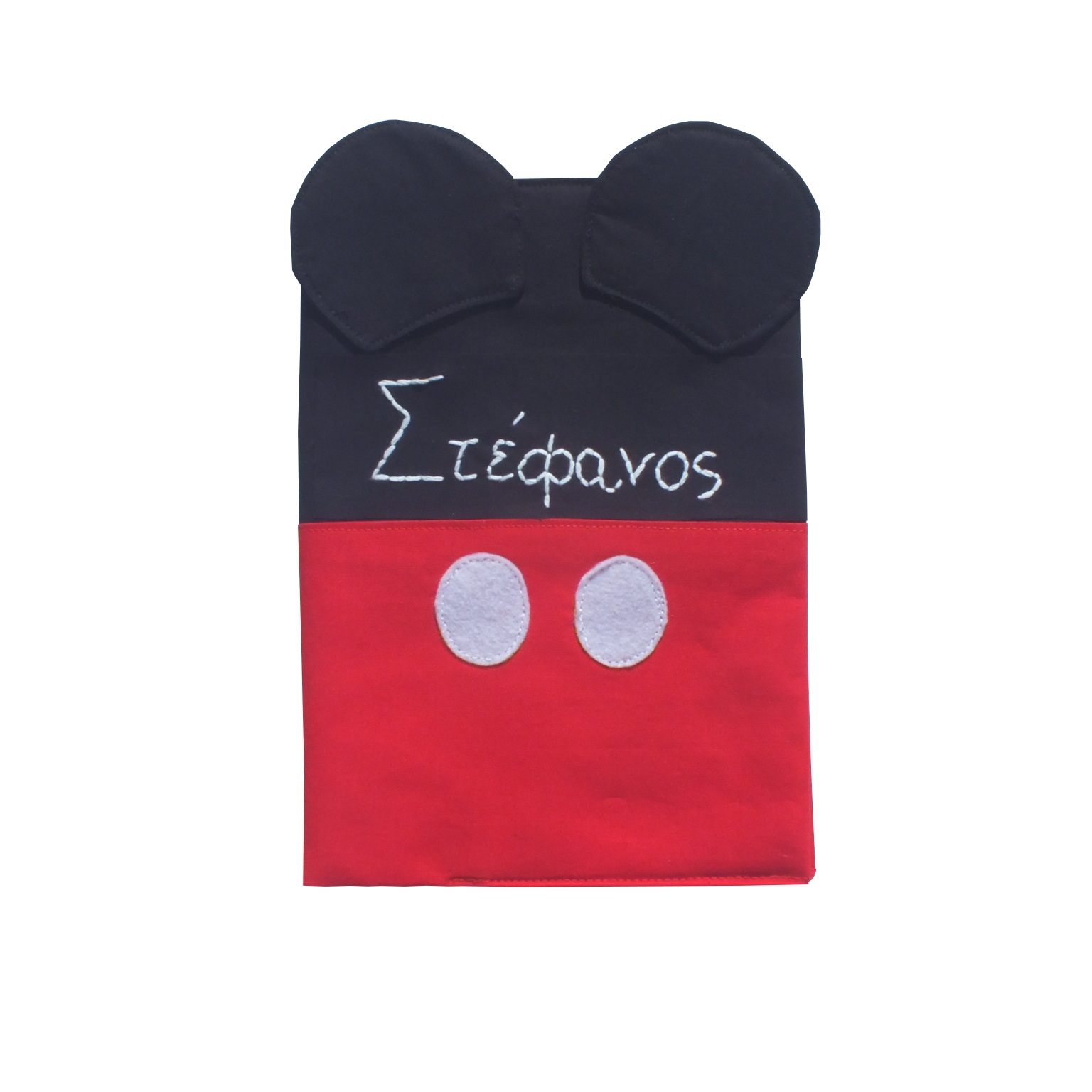Υφασμάτινη θήκη για την προστασία του βιβλιαρίου υγείας στα χρώματα του αγαπημένου μας ποντικούλη. Είναι χειροποίητη από 100% βαμβακερά υφάσματα και εχει διαστασεις 15,5 x 22 cm.Στη θήκη μπορεί να κεντηθεί στο χέρι το όνομα του παιδιού.Σε αυτή την περίπτωση παρακαλώ στα σχόλια της παραγγελίας σημειώστε το όνομα που επιθυμείτε.Ιδανικό δώρο για νεογέννητο , για δώρο γενεθλίων ή βάπτισης!