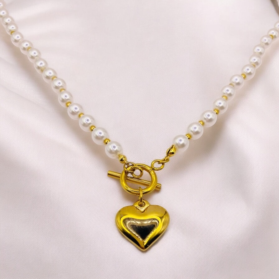 “VALENTINE” Ατσάλινο κολιέ με χρυσά χαρακτηριστικά και πέρλες
