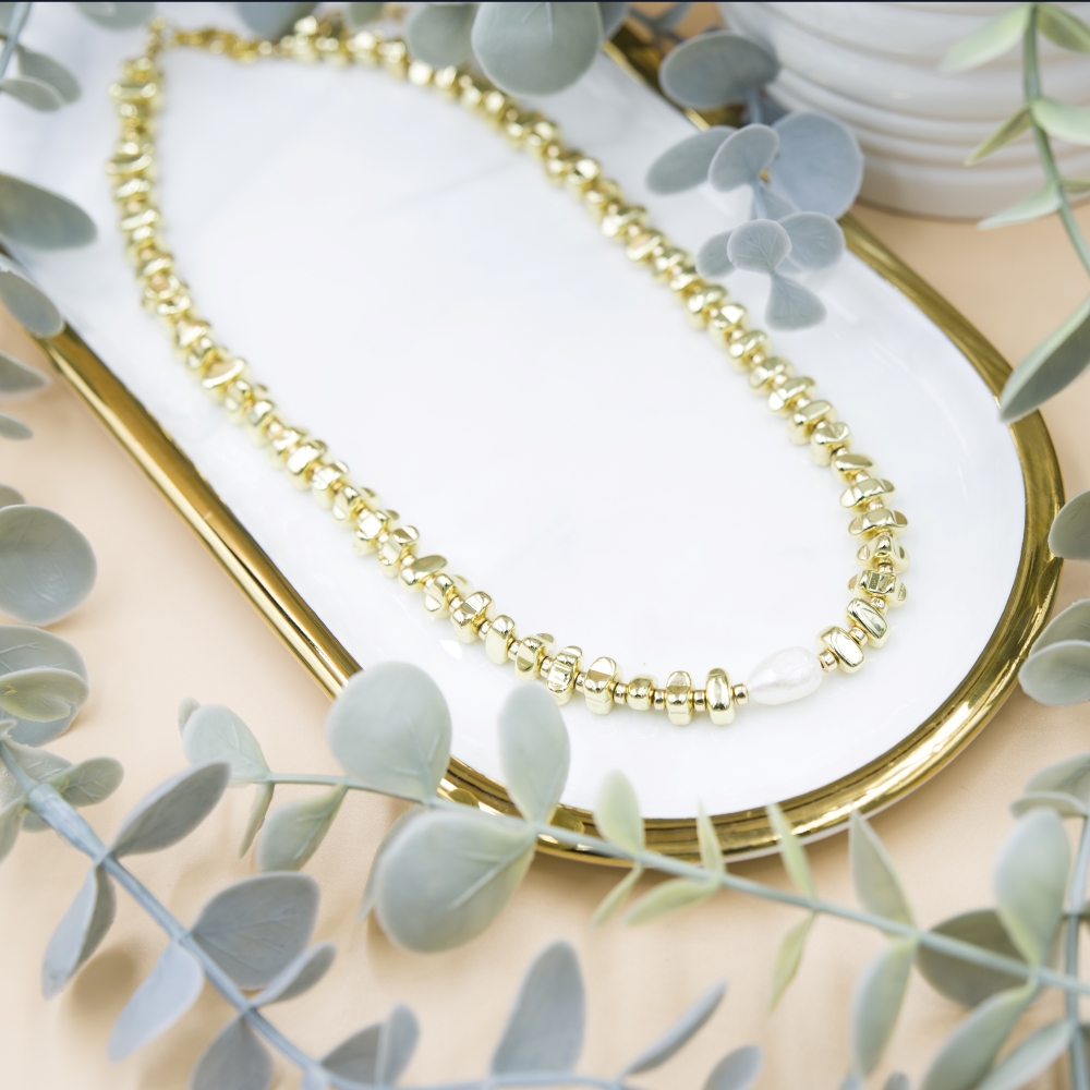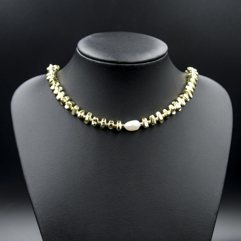 Κολιέ με φυσικό μαργαριτάρι και επιχρυσωμένα 14Κ αιματίτες