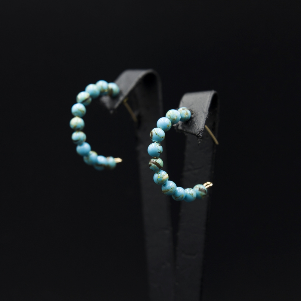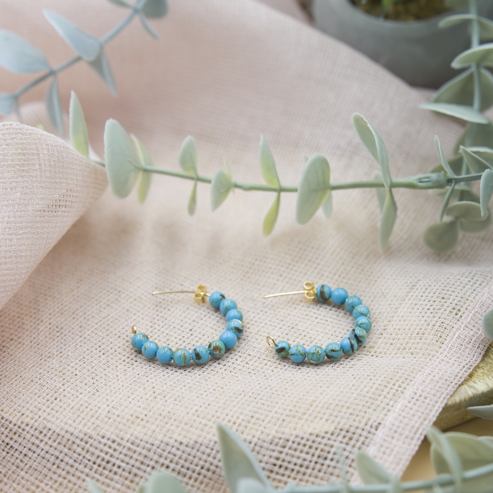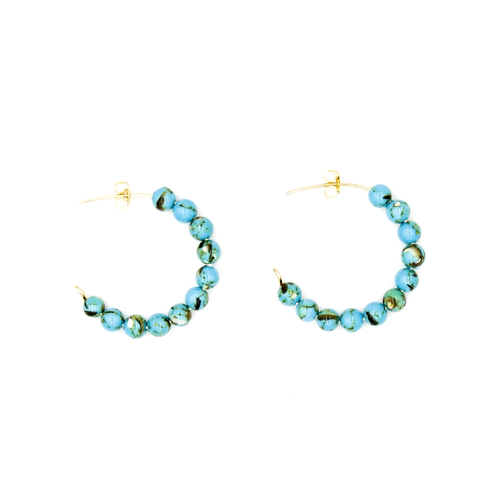 Καλοκαιρινά κρικάκια με χάντρες από Χαολίτης. Τα μέταλλα είναι επιχρυσωμένο ανοξείδωτο ατσάλι.