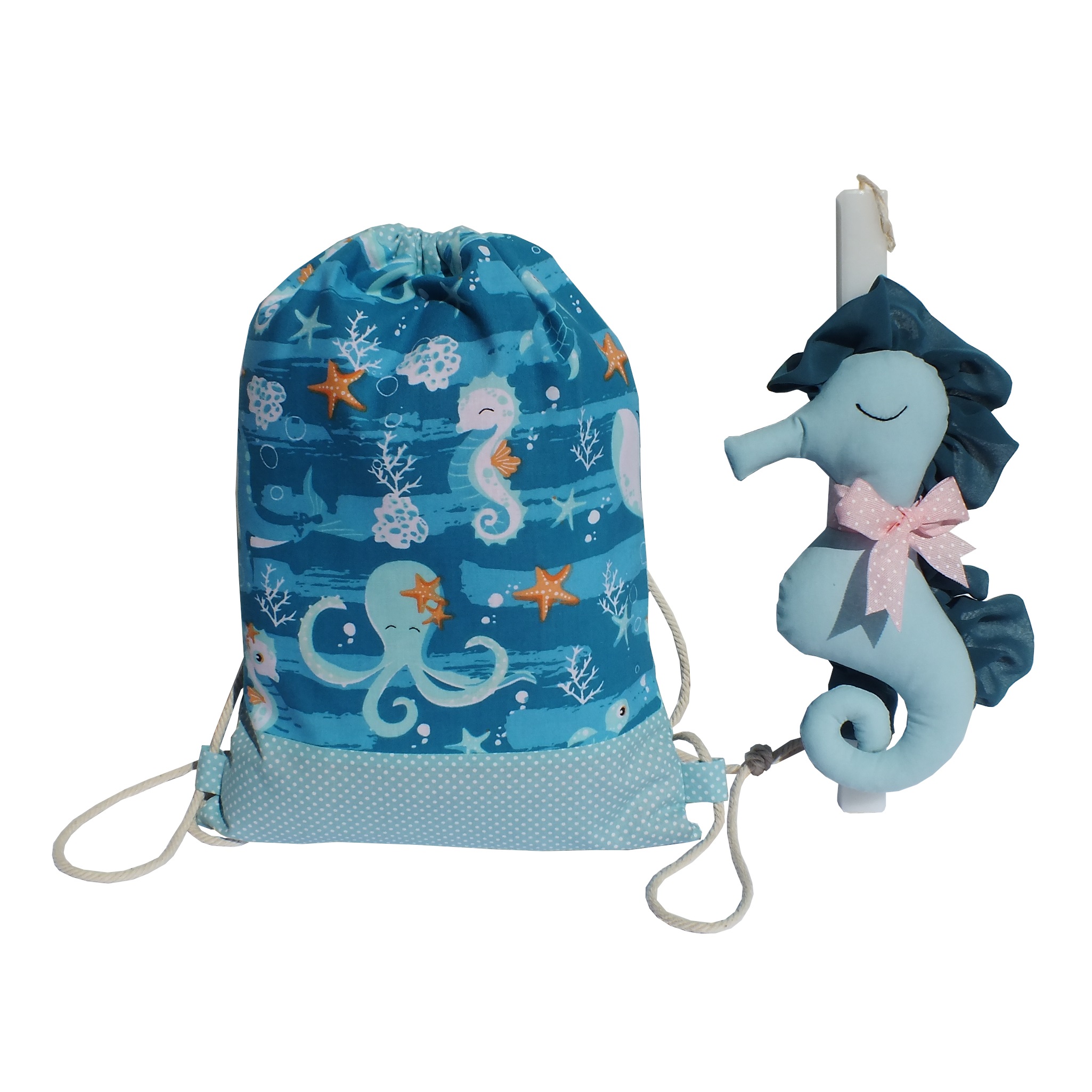 Σετ Δώρου Λαμπάδα με Ιππόκαμπος και Σακίδιο Πλάτης