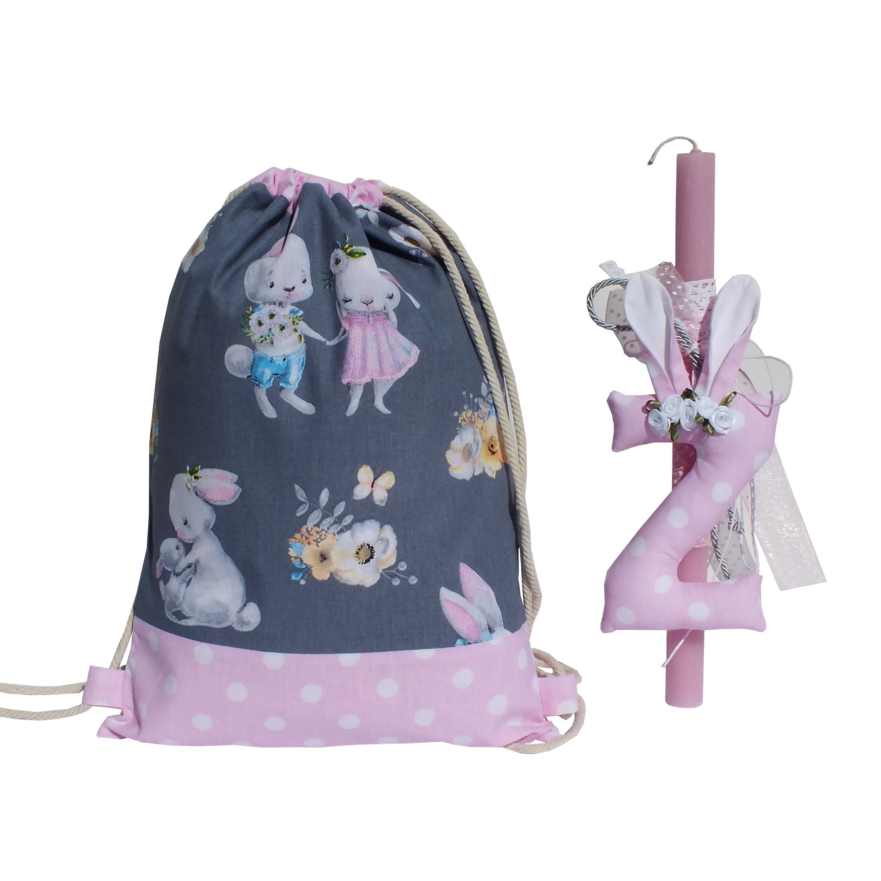 Σετ Δώρου Λαμπάδα με Μονόγραμμα και Σακίδιο Πλάτης – Κουνελάκια