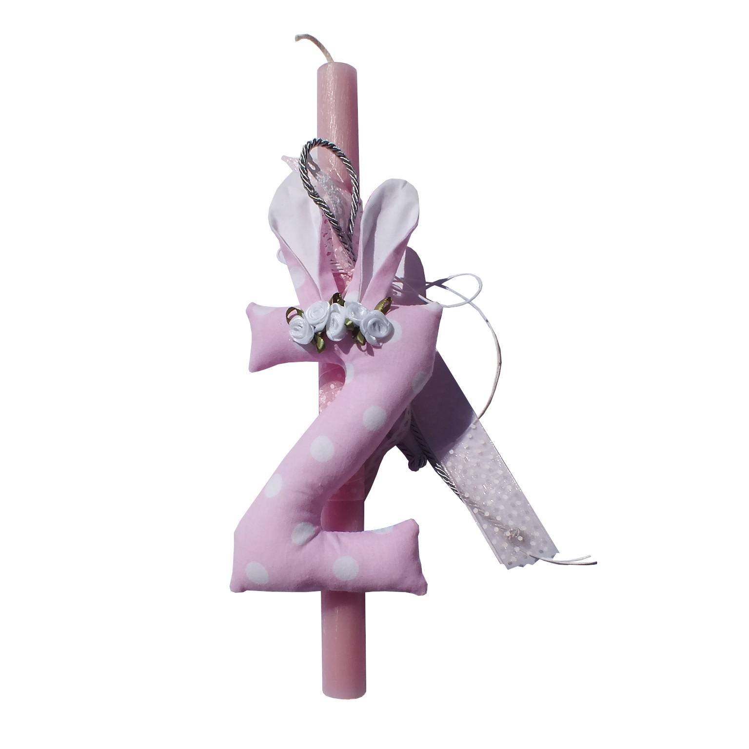 Λαμπάδα με μονόγραμμα με αυτιά κουνελιού και τριανταφυλλάκια