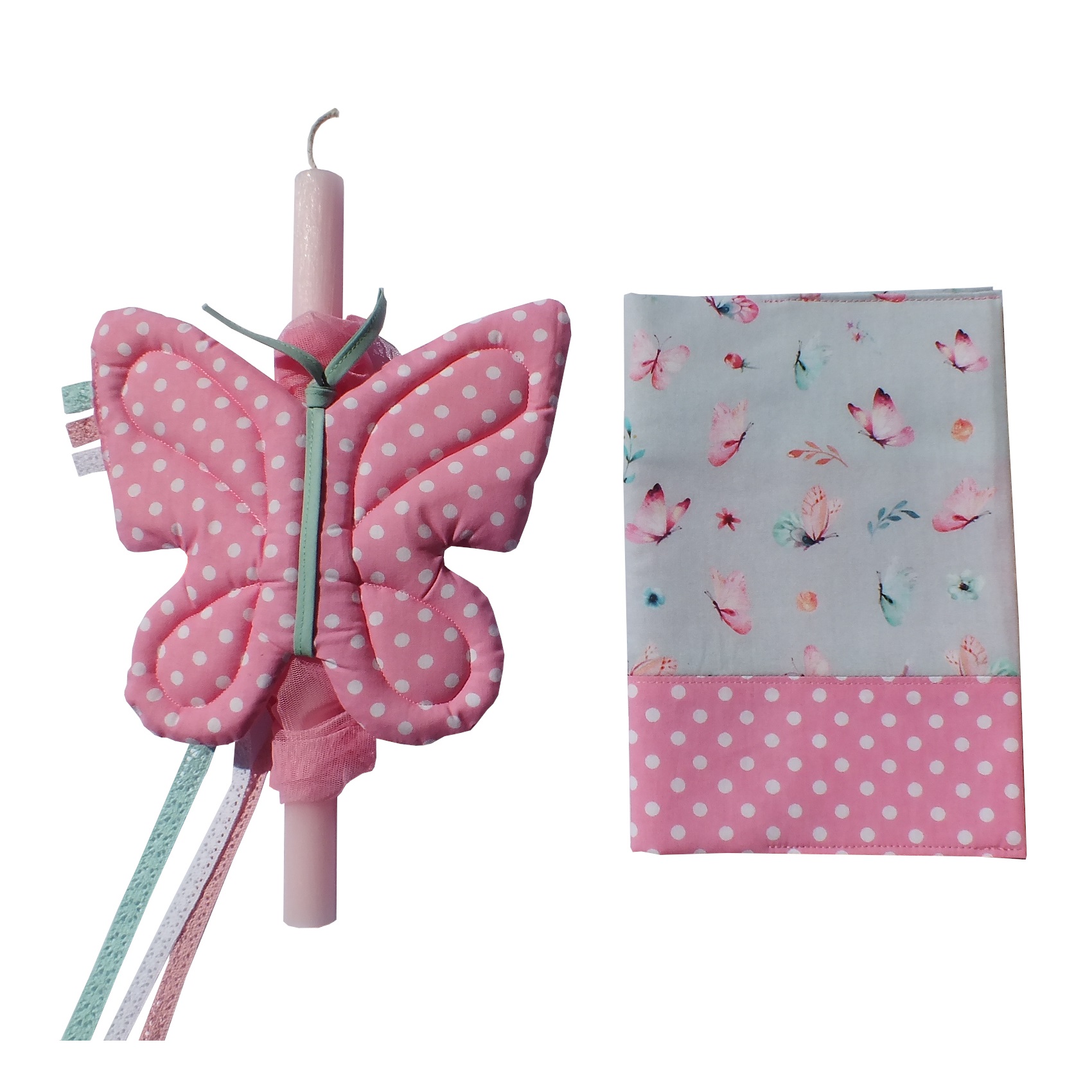 Σετ Δώρου – Λαμπάδα με Υφασμάτινη Πεταλούδα και Θήκη για Βιβλιάριο Υγείας