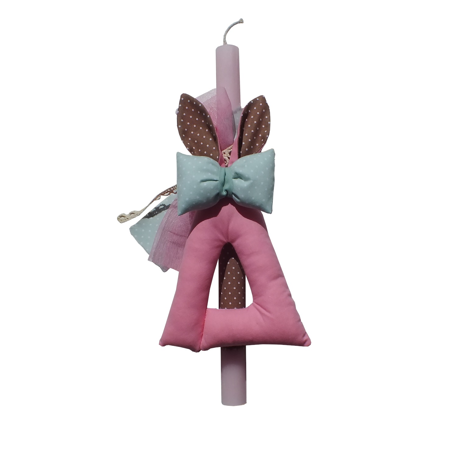 Λαμπάδα με μονόγραμμα με αυτιά κουνελιού και φιογκάκι