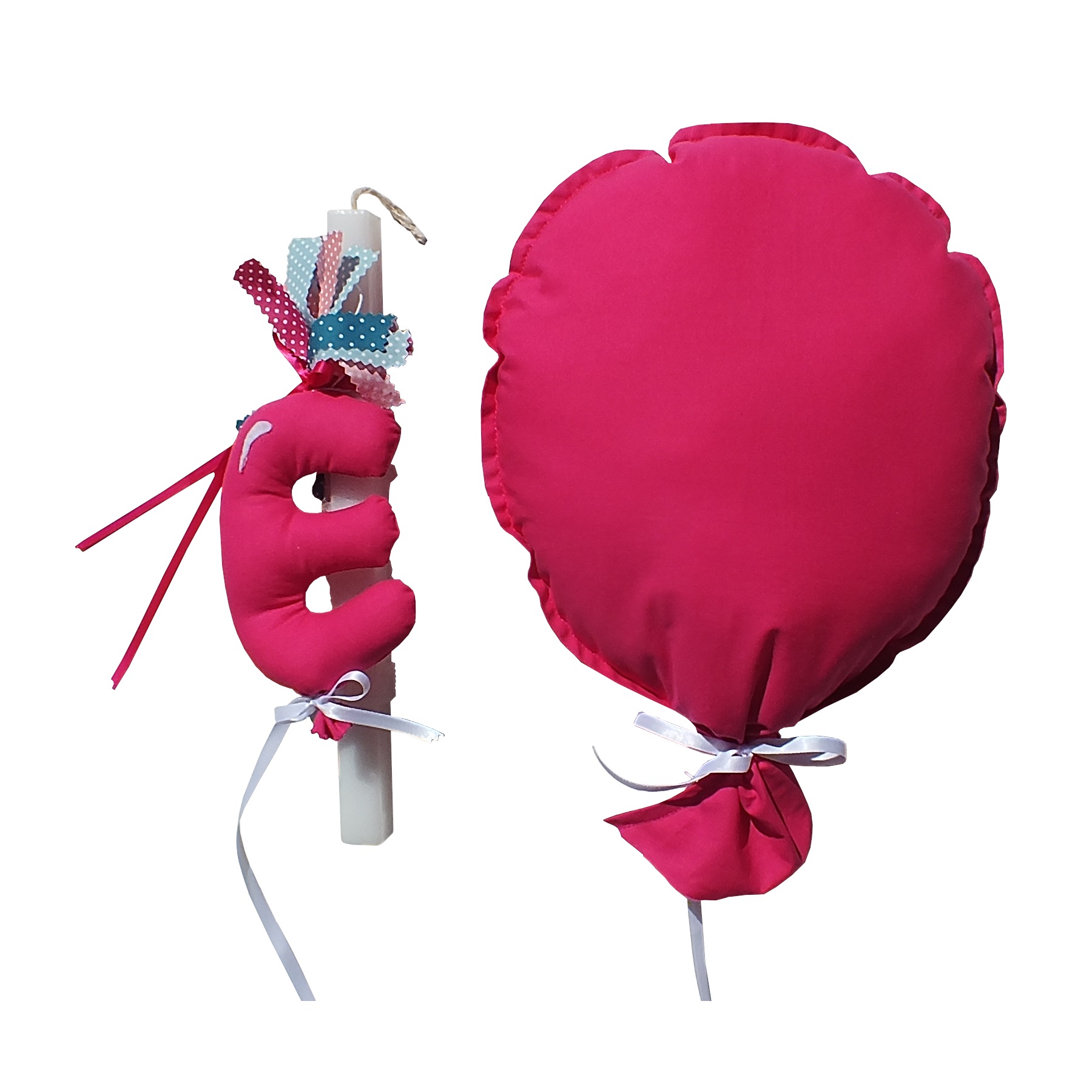 Σετ Δώρου Λαμπάδα με Υφασμάτινο Μονόγραμμα και Κρεμαστό Τοίχου – Μπαλόνι Φούξια