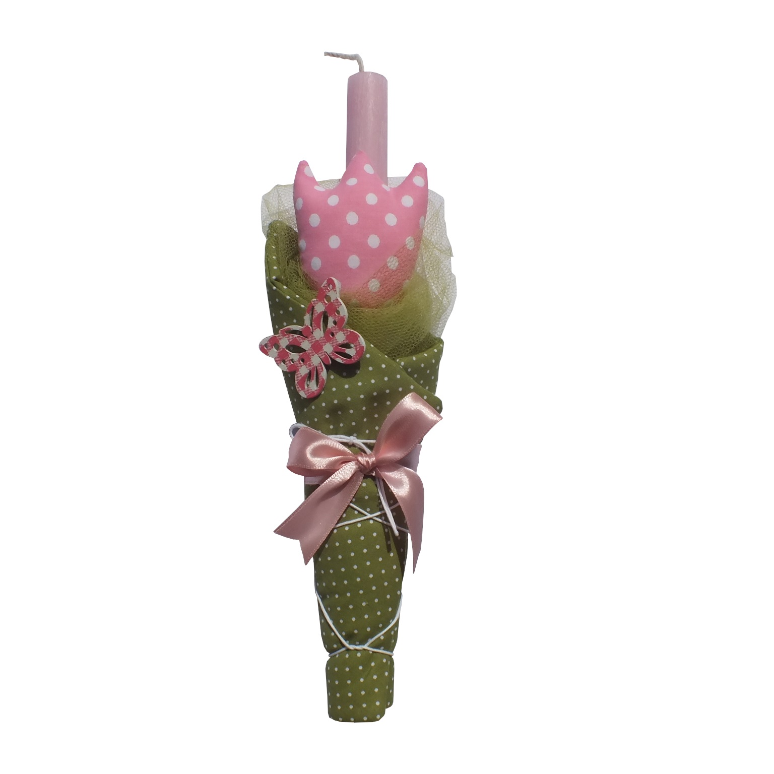 Λαμπάδα με Υφασμάτινη Τουλίπα – Ροζ Πουά