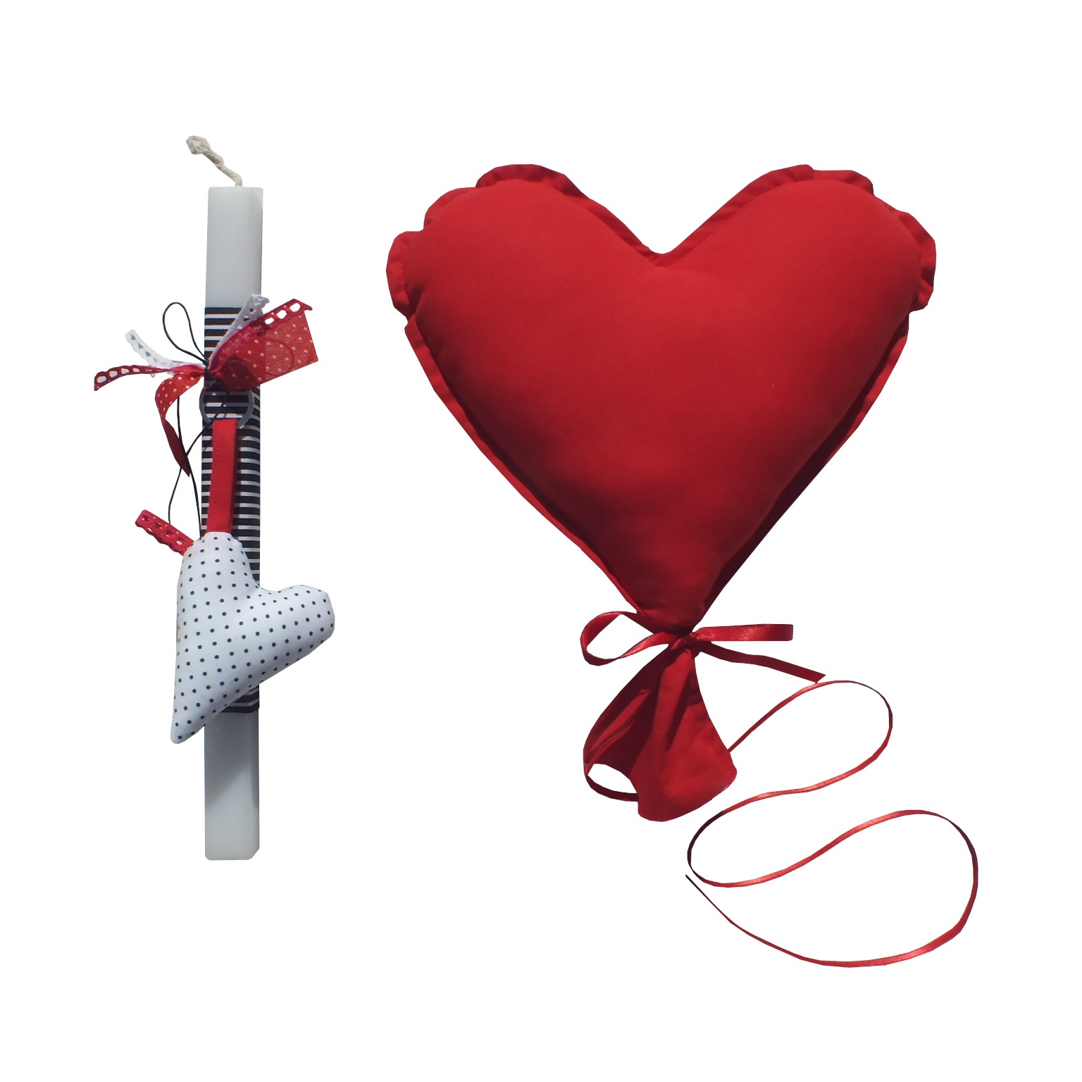 Σετ Δώρου Λαμπάδα με Υφασμάτινο Μπρελόκ Πούα και Κρεμαστό Μπαλόνι – Καρδιά