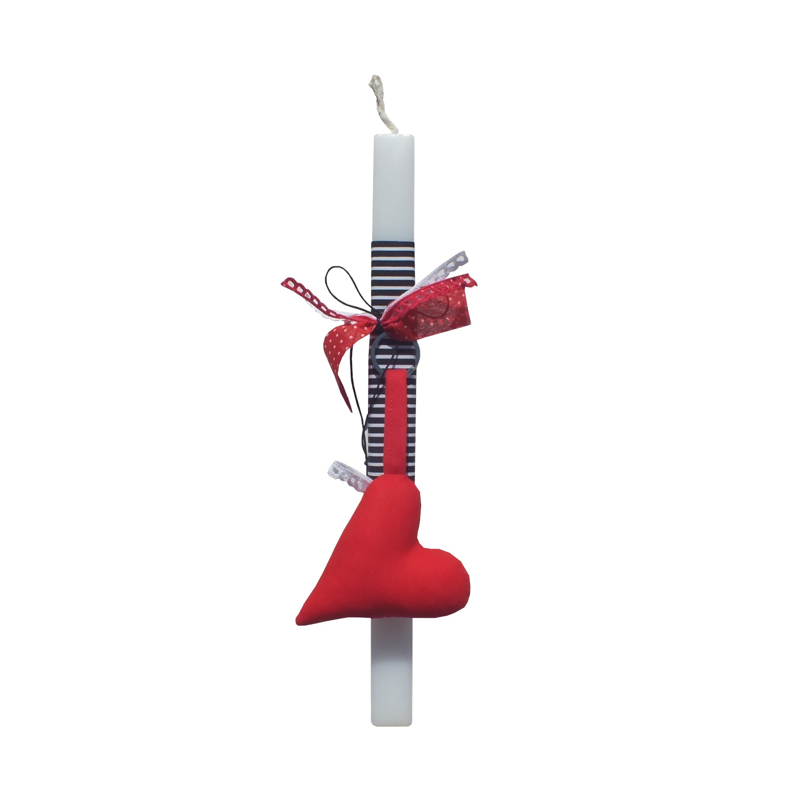 Λαμπάδα με Μπρελόκ – Υφασμάτινη Καρδιά Κόκκινη