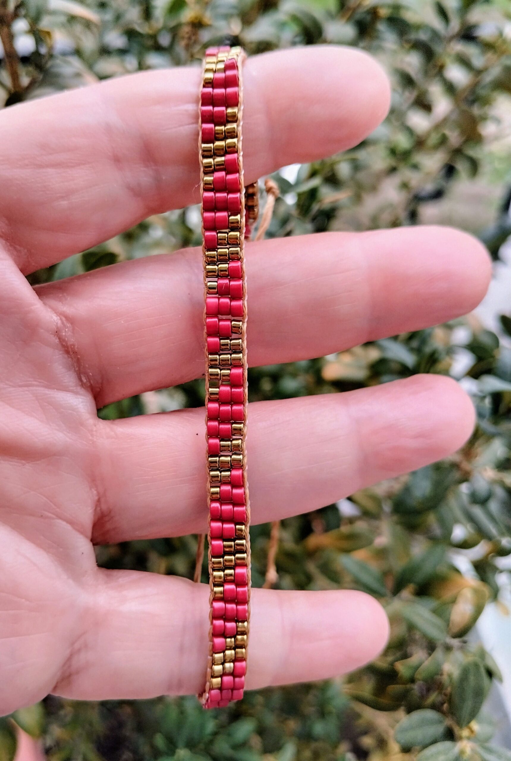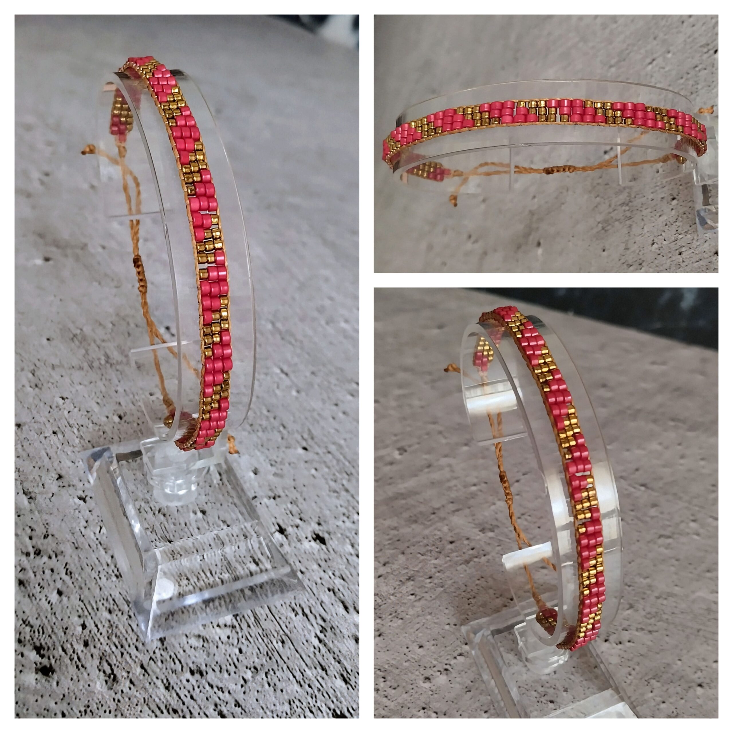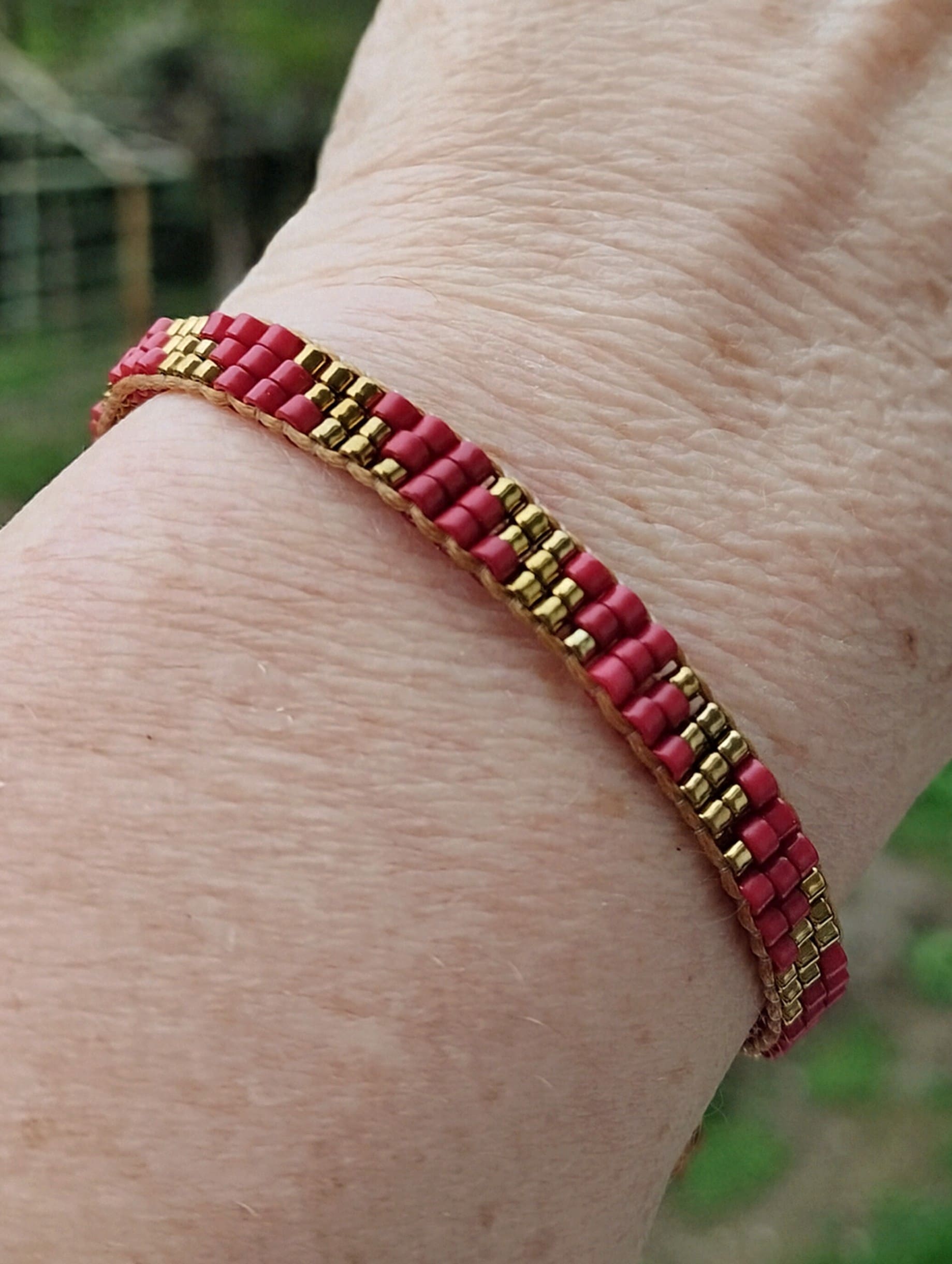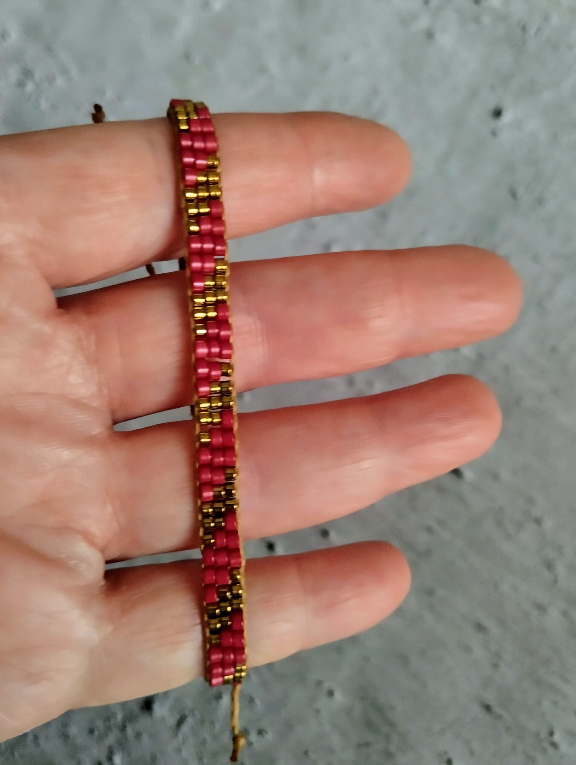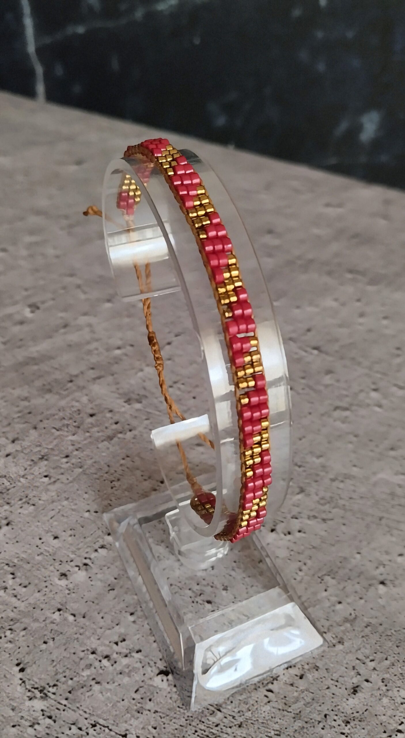 Είναι σε τρεις σειρές οι χαντρούλες που σχηματίζουν ένα όμορφο σχέδιο, στα χρώματα του μπορντό και του vintage χρυσού, το κορδόνι του είναι στο χρώμα της ζεστής σοκολάτας!!