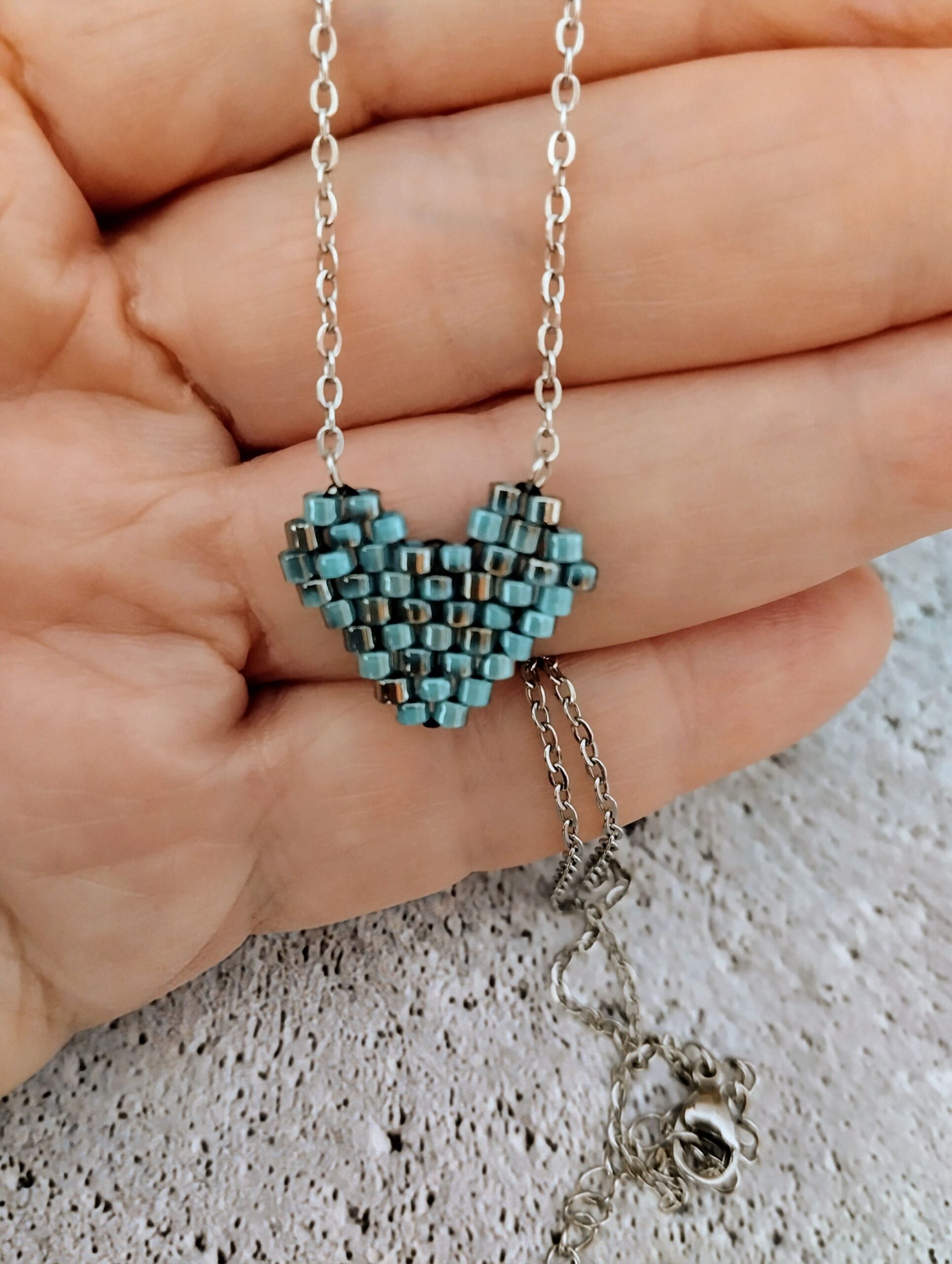 Ατσάλινο κολιέ καρδιά miyuki 2
