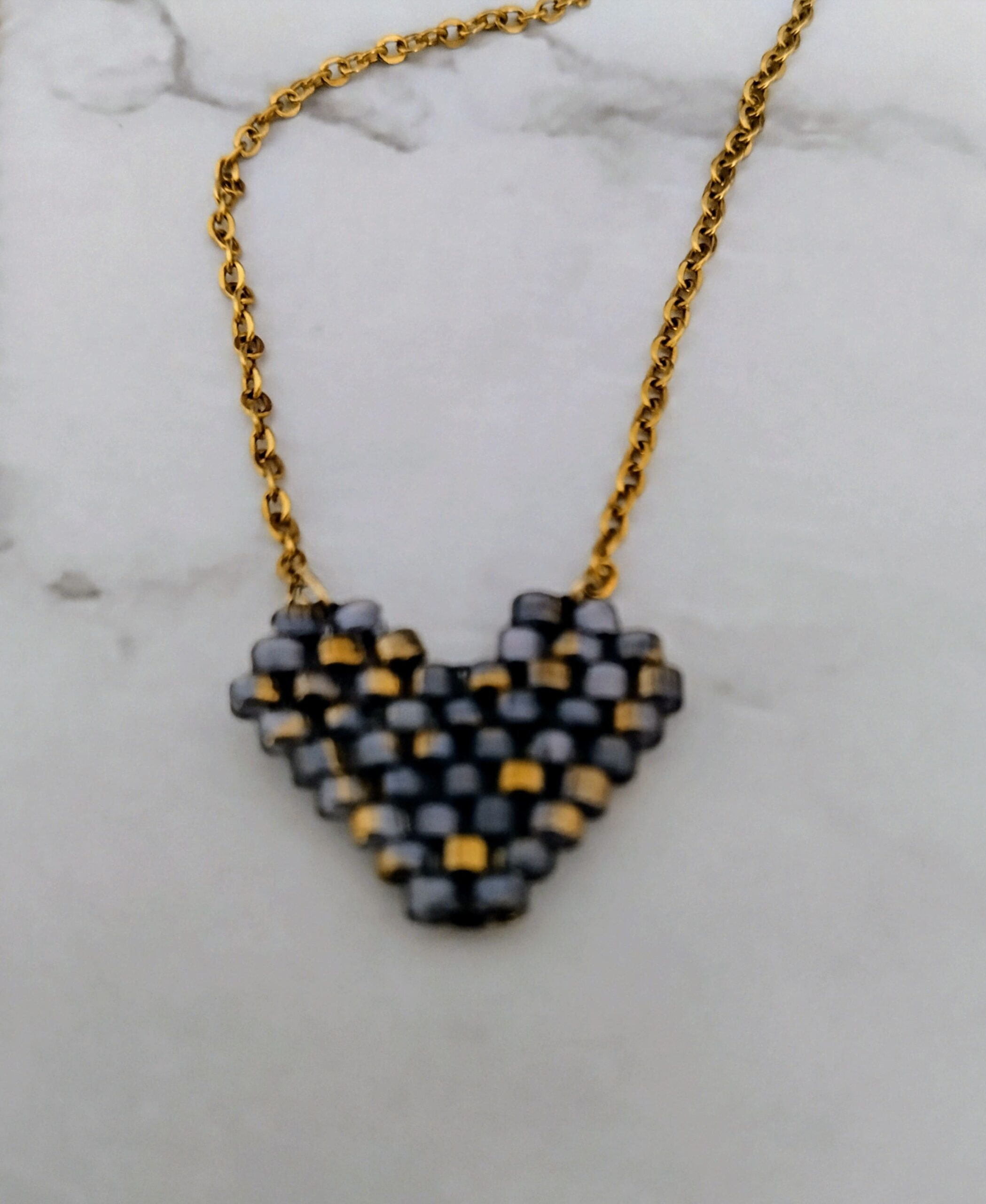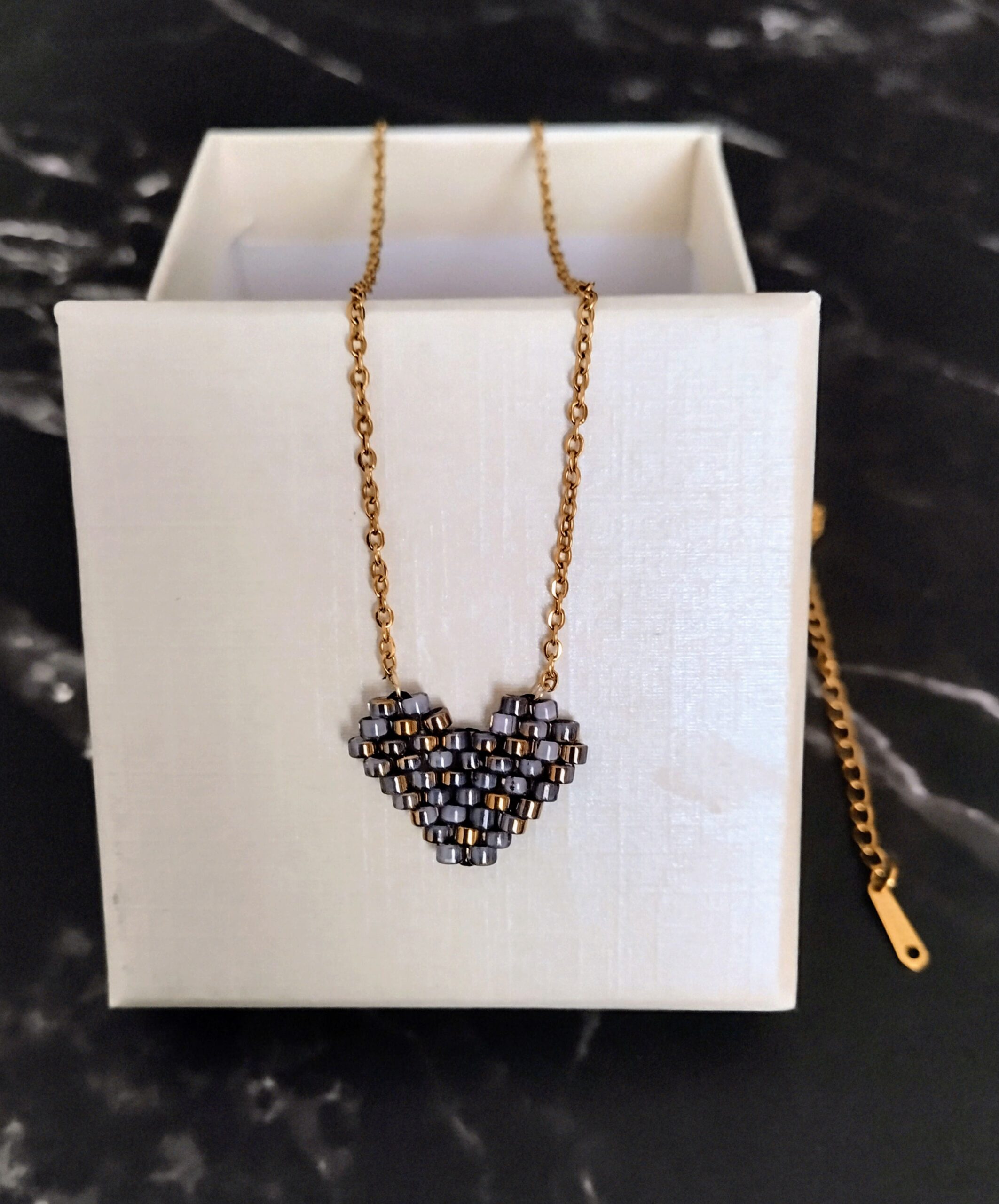 Ατσάλινο κολιέ καρδιά miyuki 9.