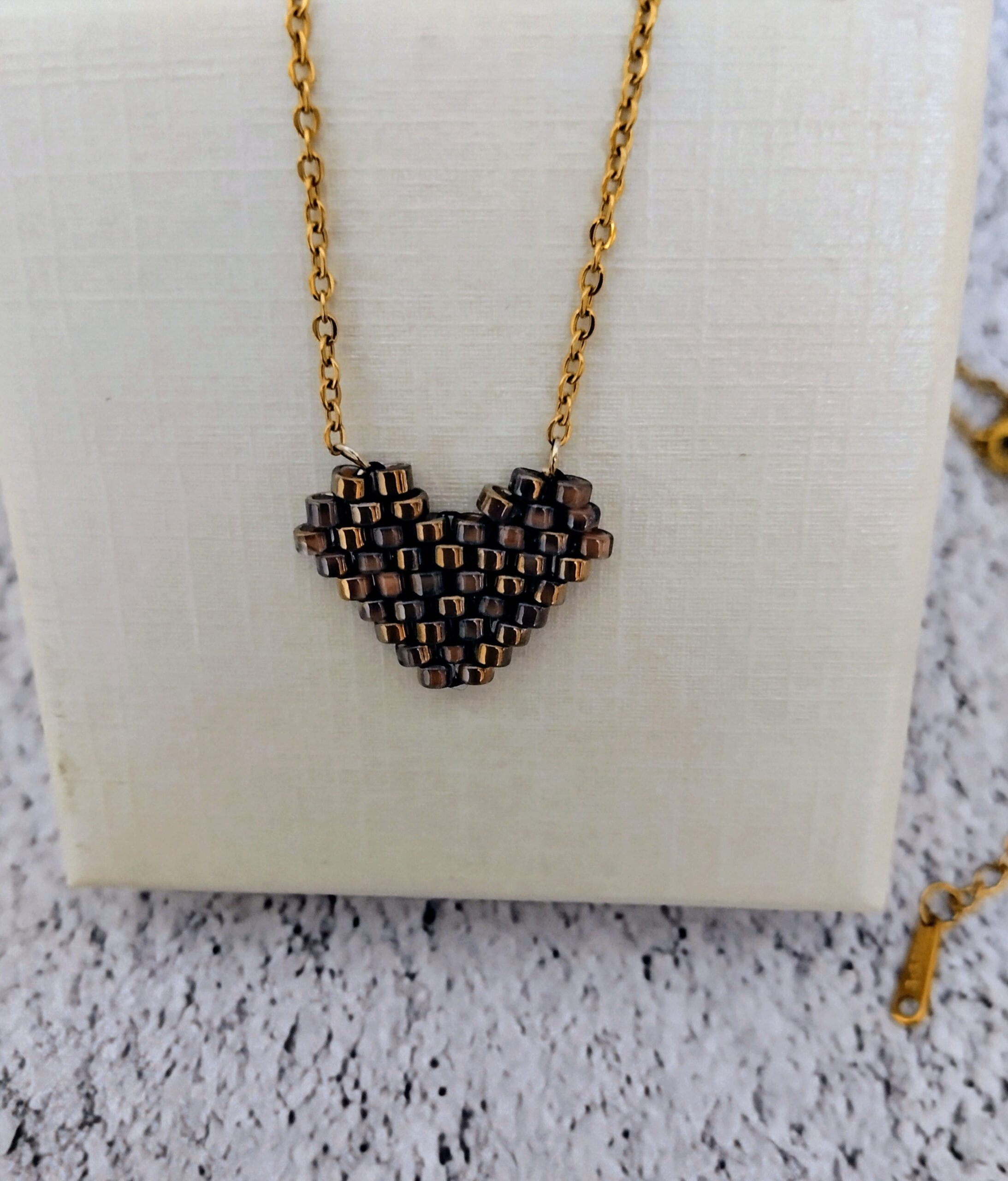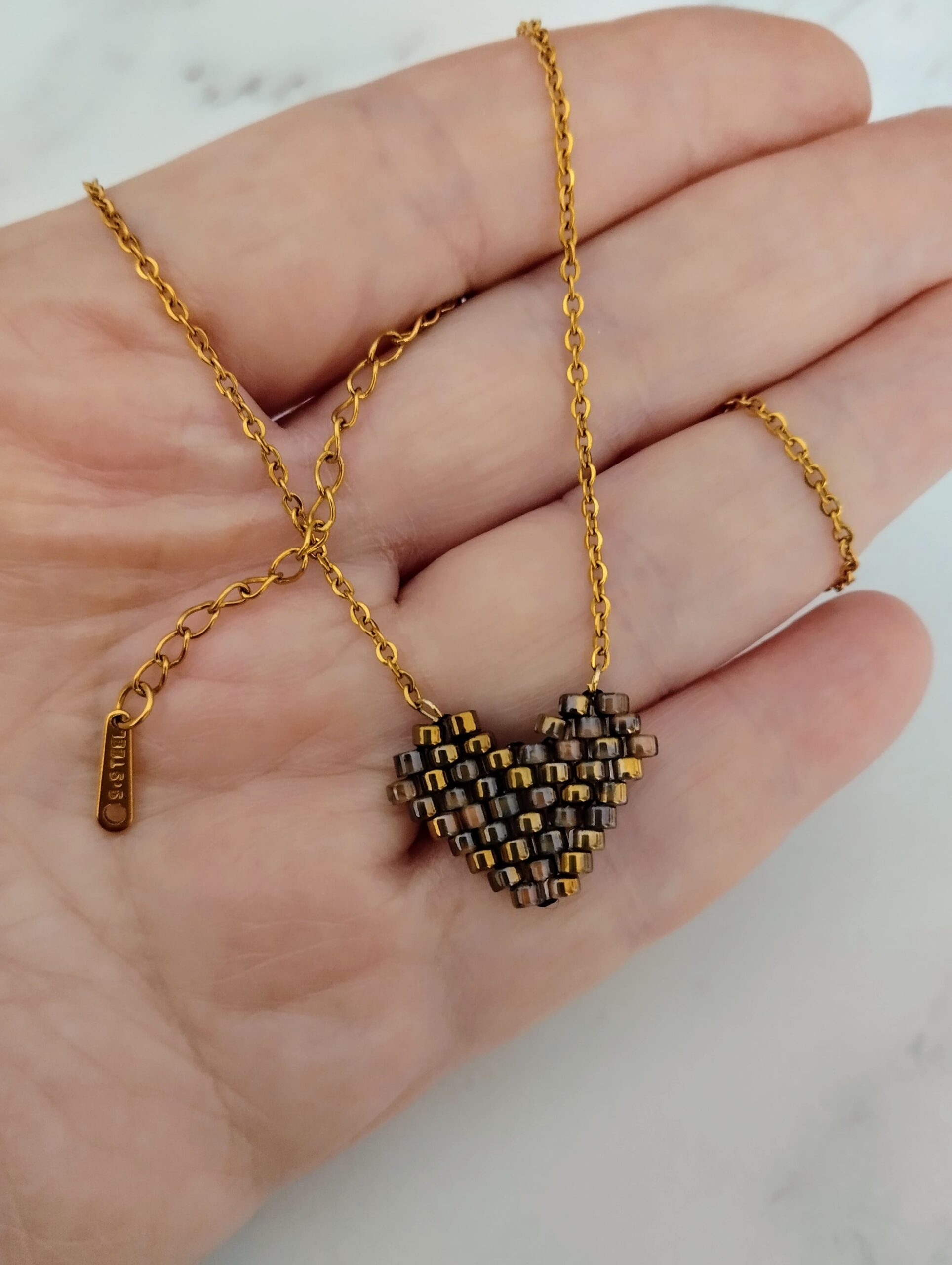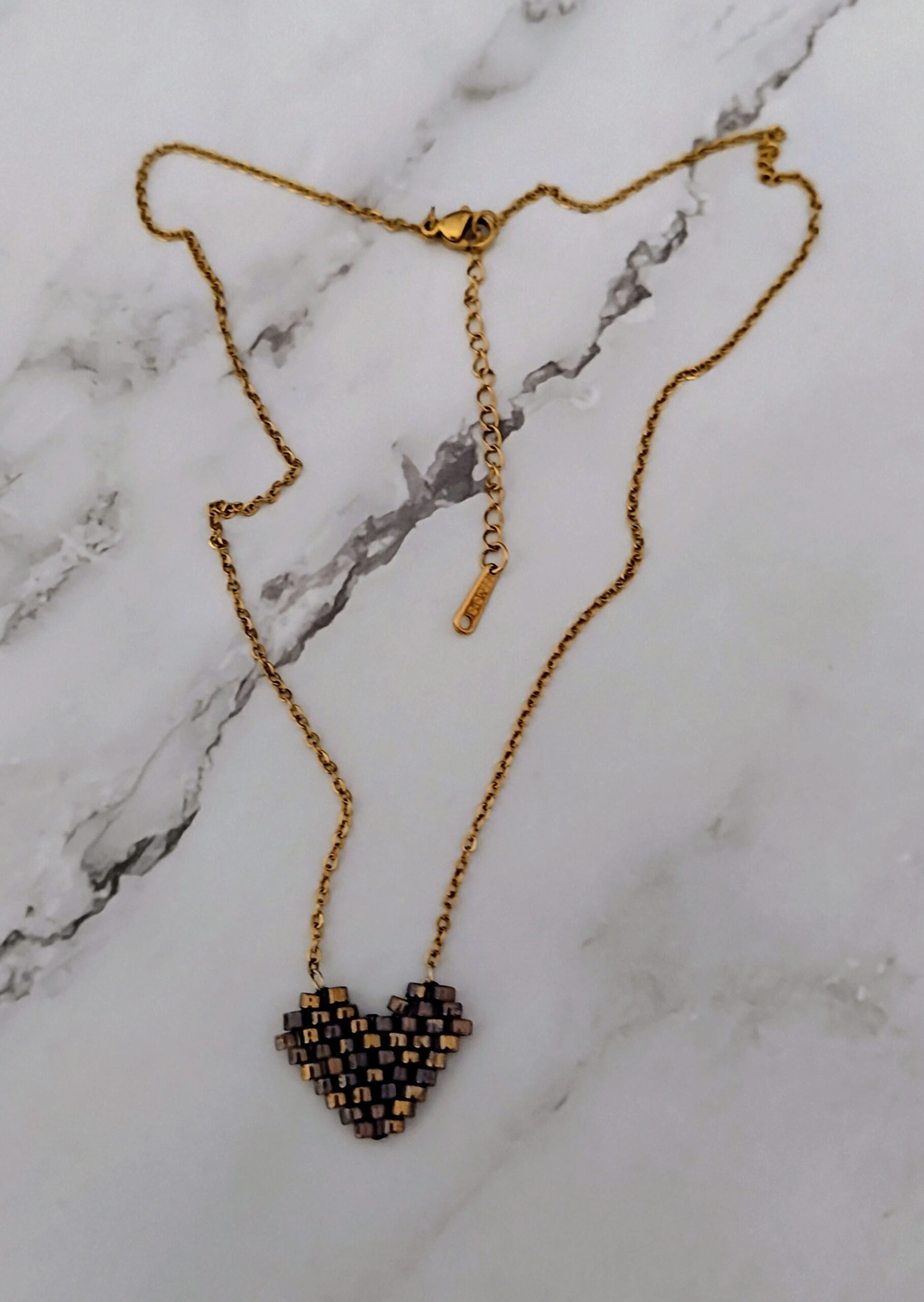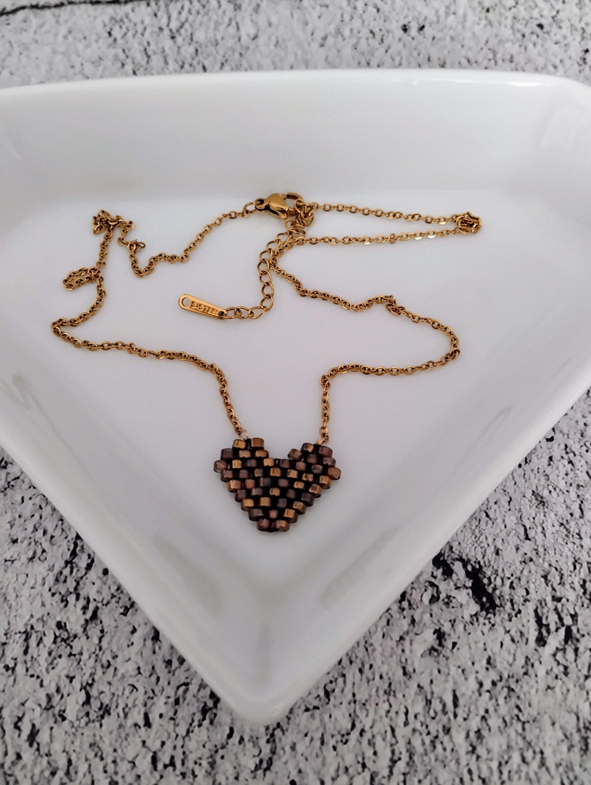 Ατσάλινο κολιέ καρδιά miyuki 10