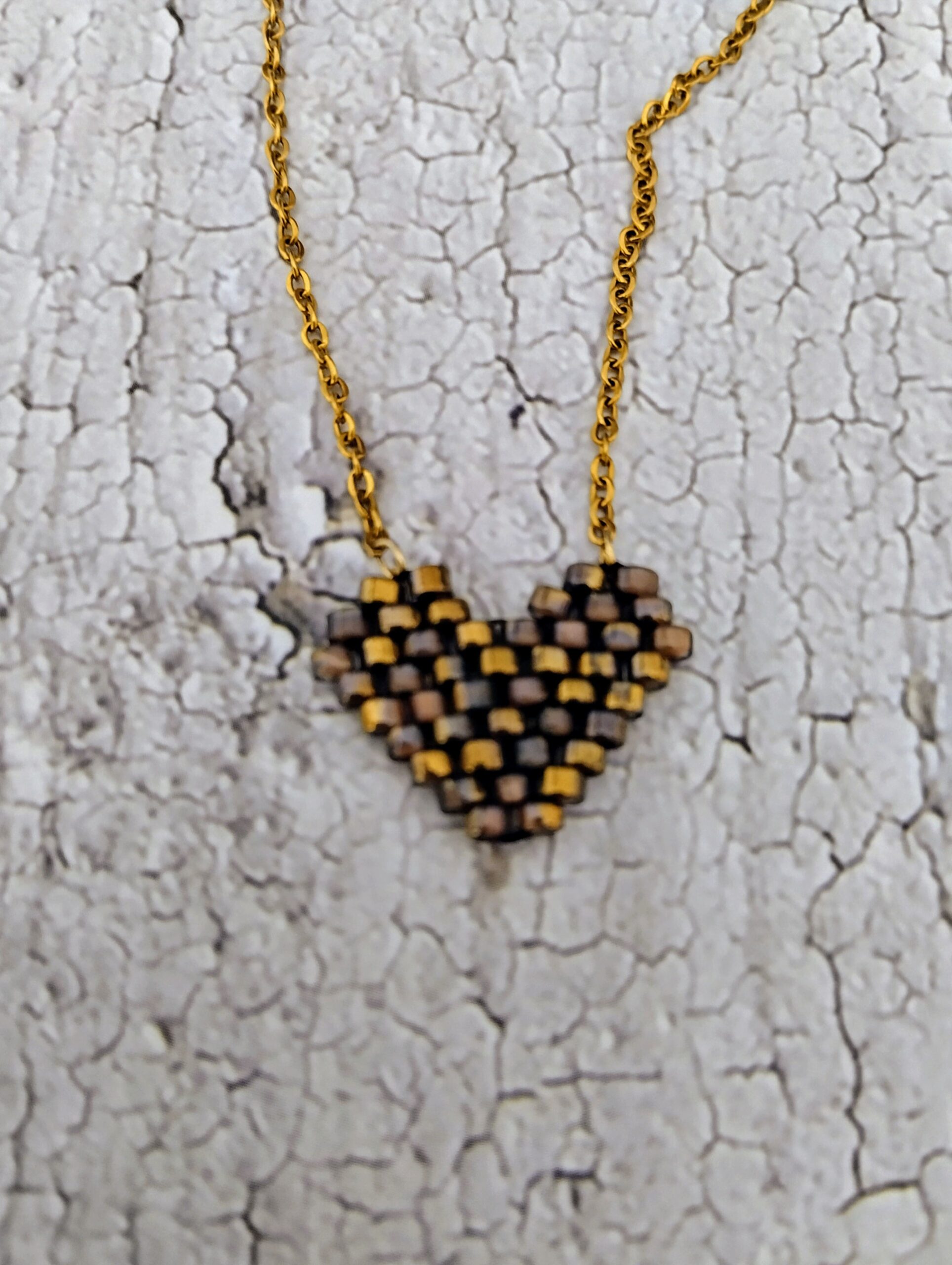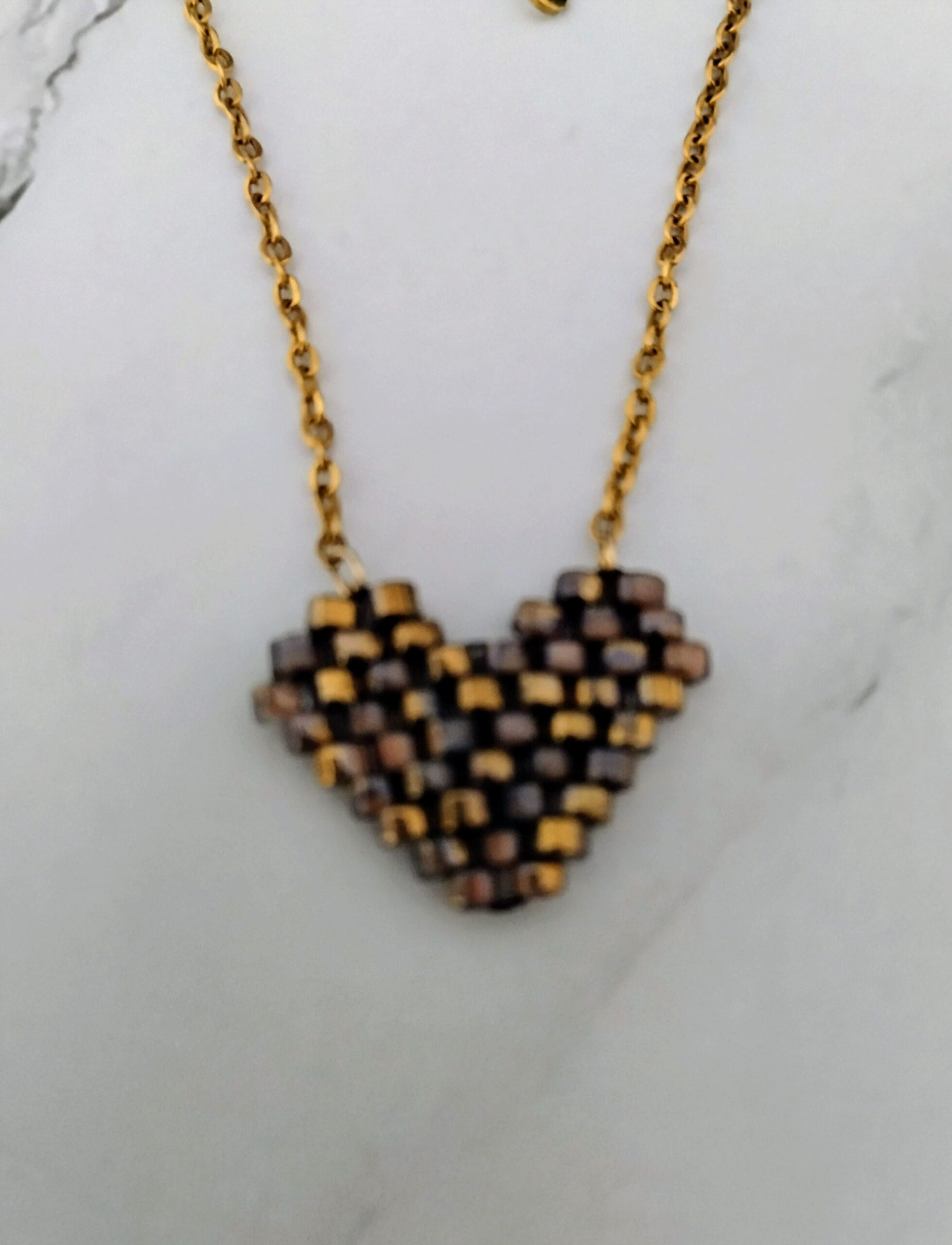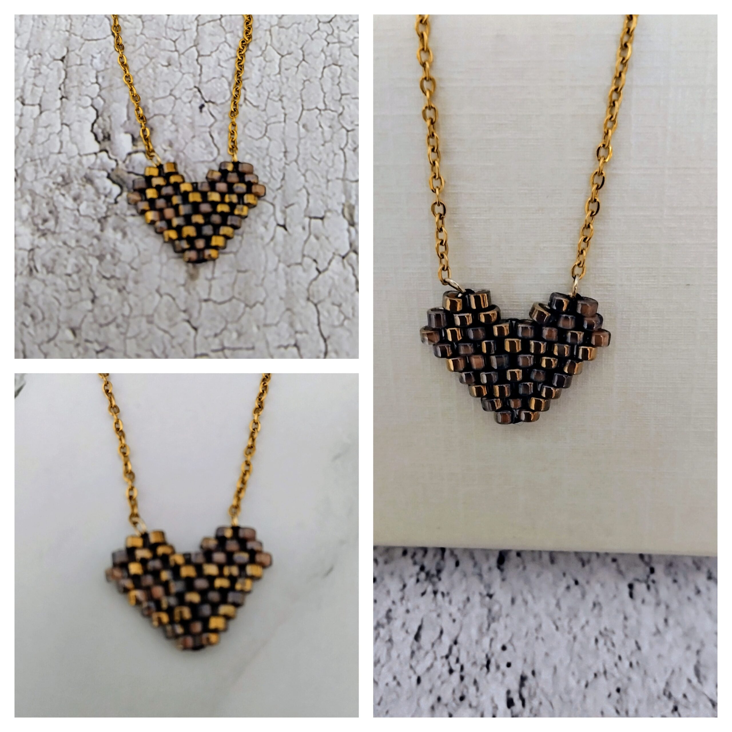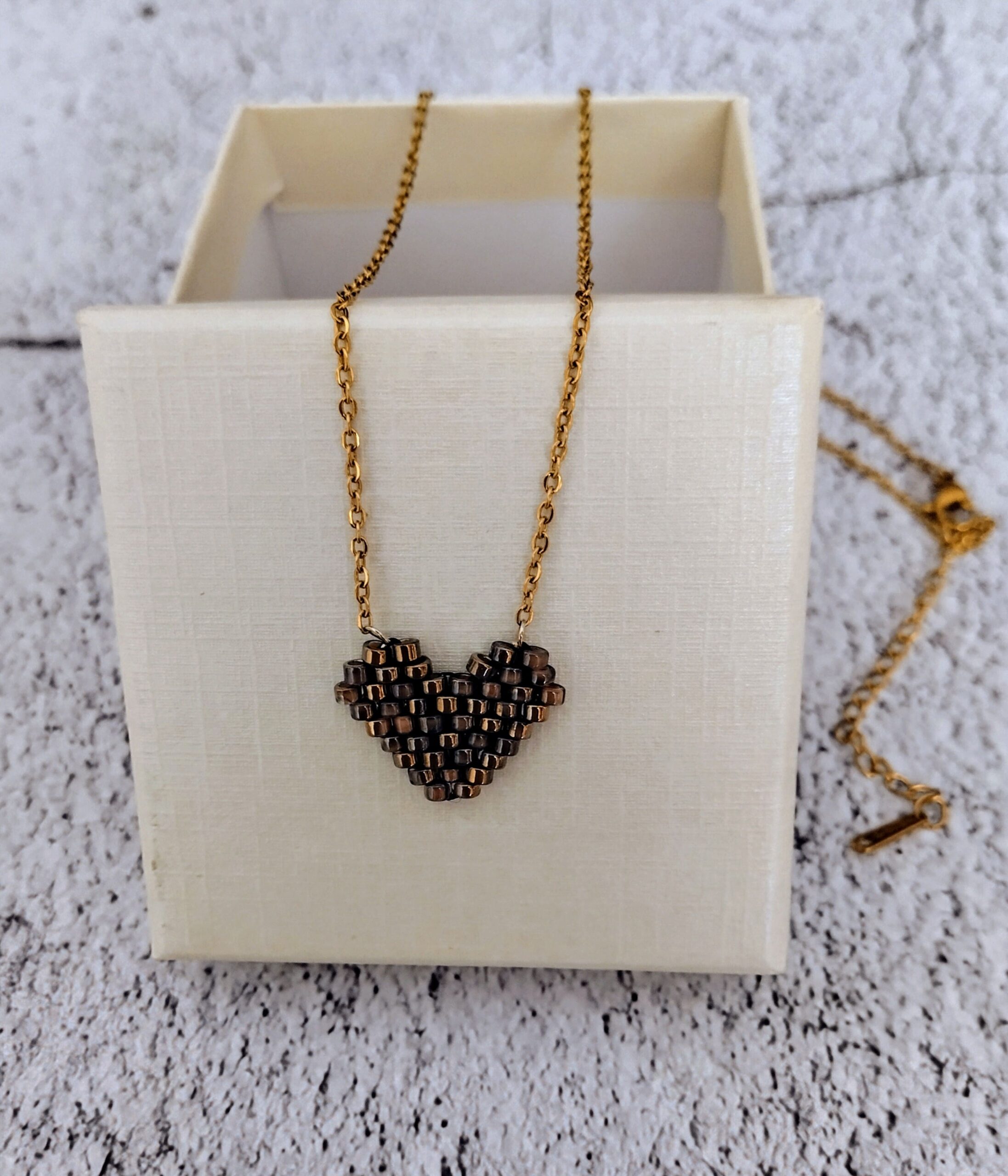 Ατσάλινο κολιέ καρδιά miyuki 10