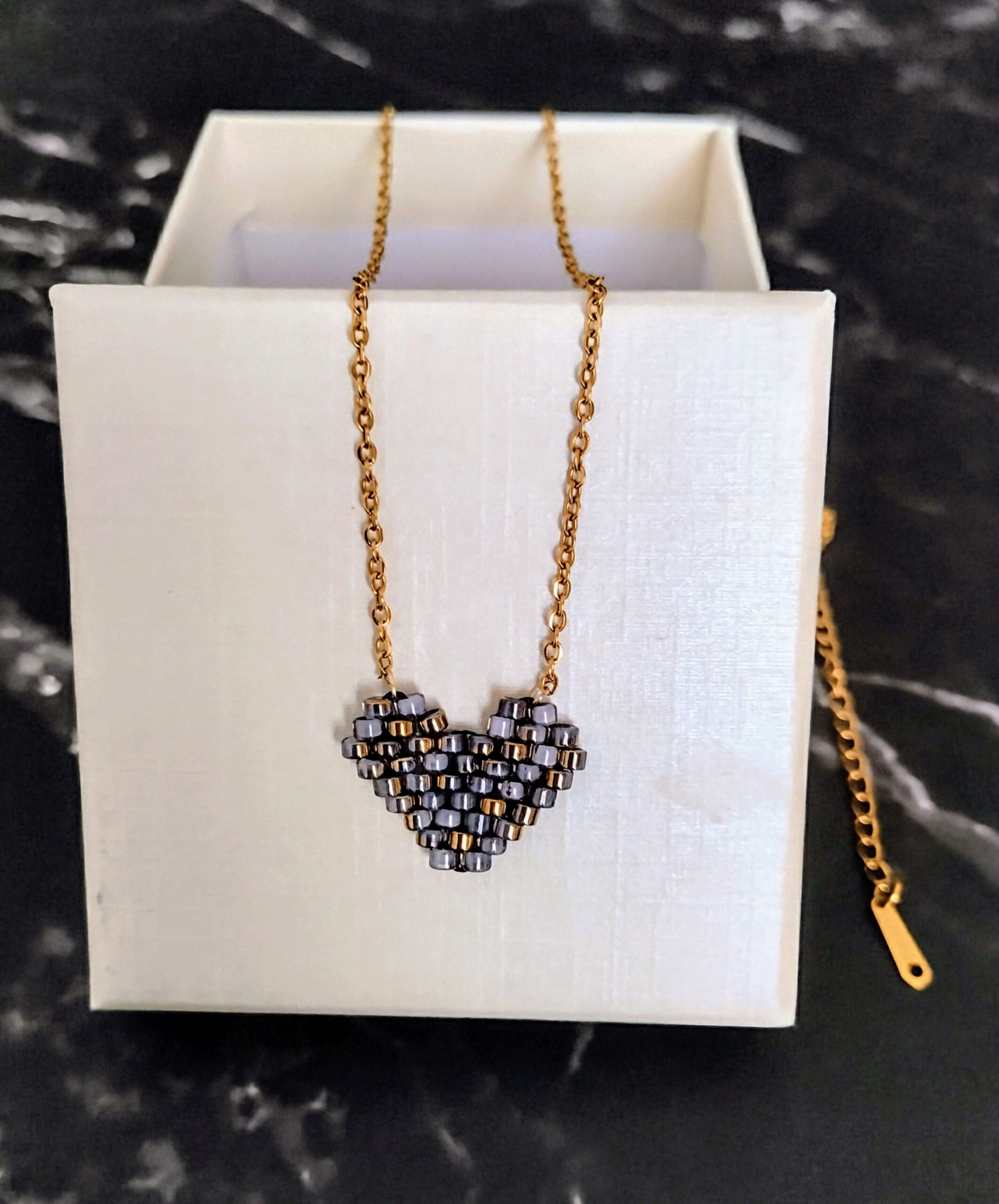 Ατσάλινο κολιέ καρδιά miyuki 17