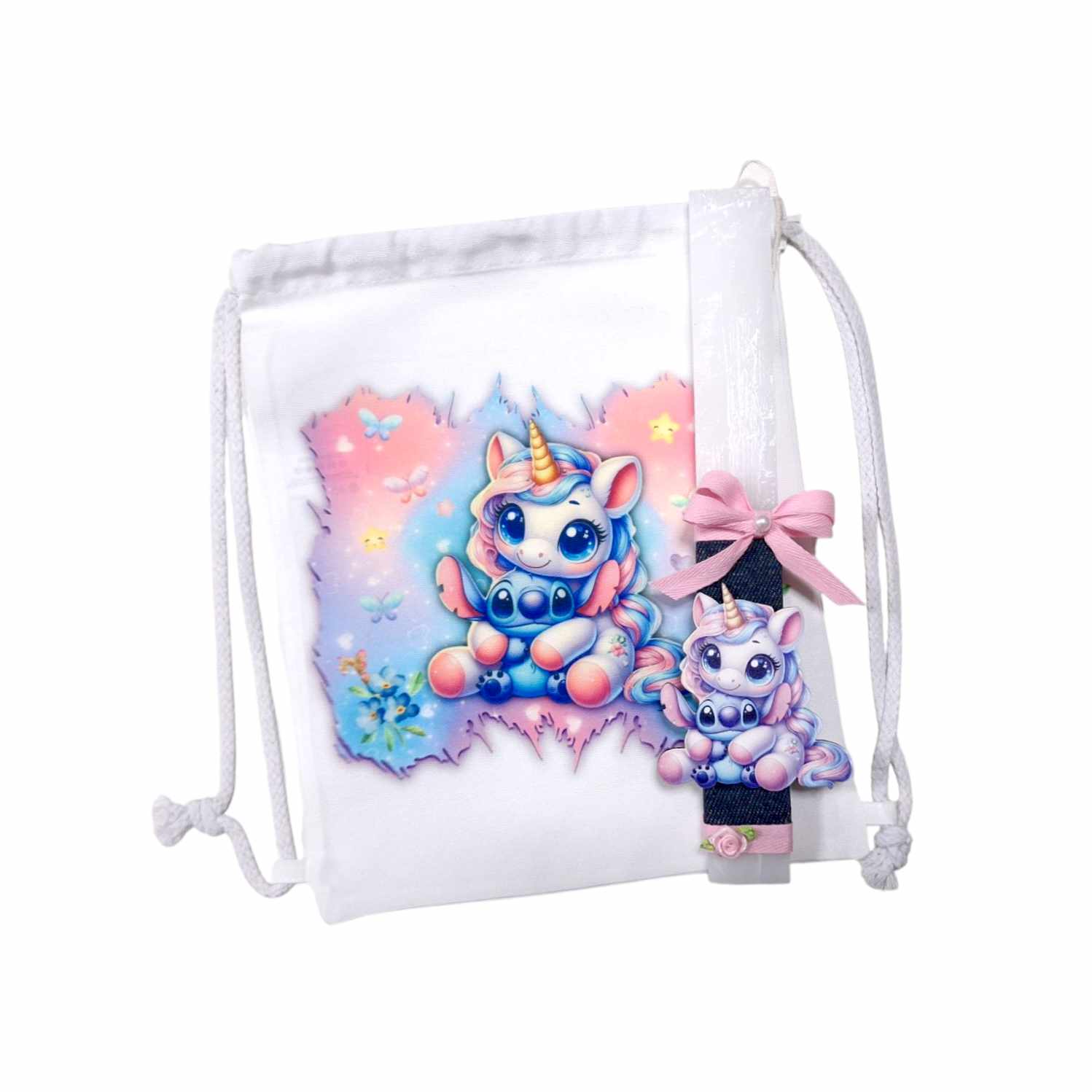 Λαμπάδα με προσωποποιημένο σακίδιο πλάτης | Stitch και μονόκερος