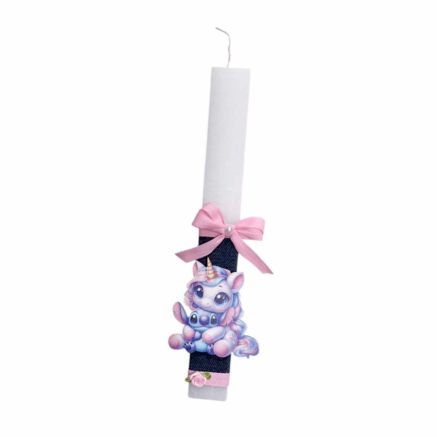 Λαμπάδα 30εκ. με ξύλινη διακοσμητική φιγούρα Stitch 9εκ.