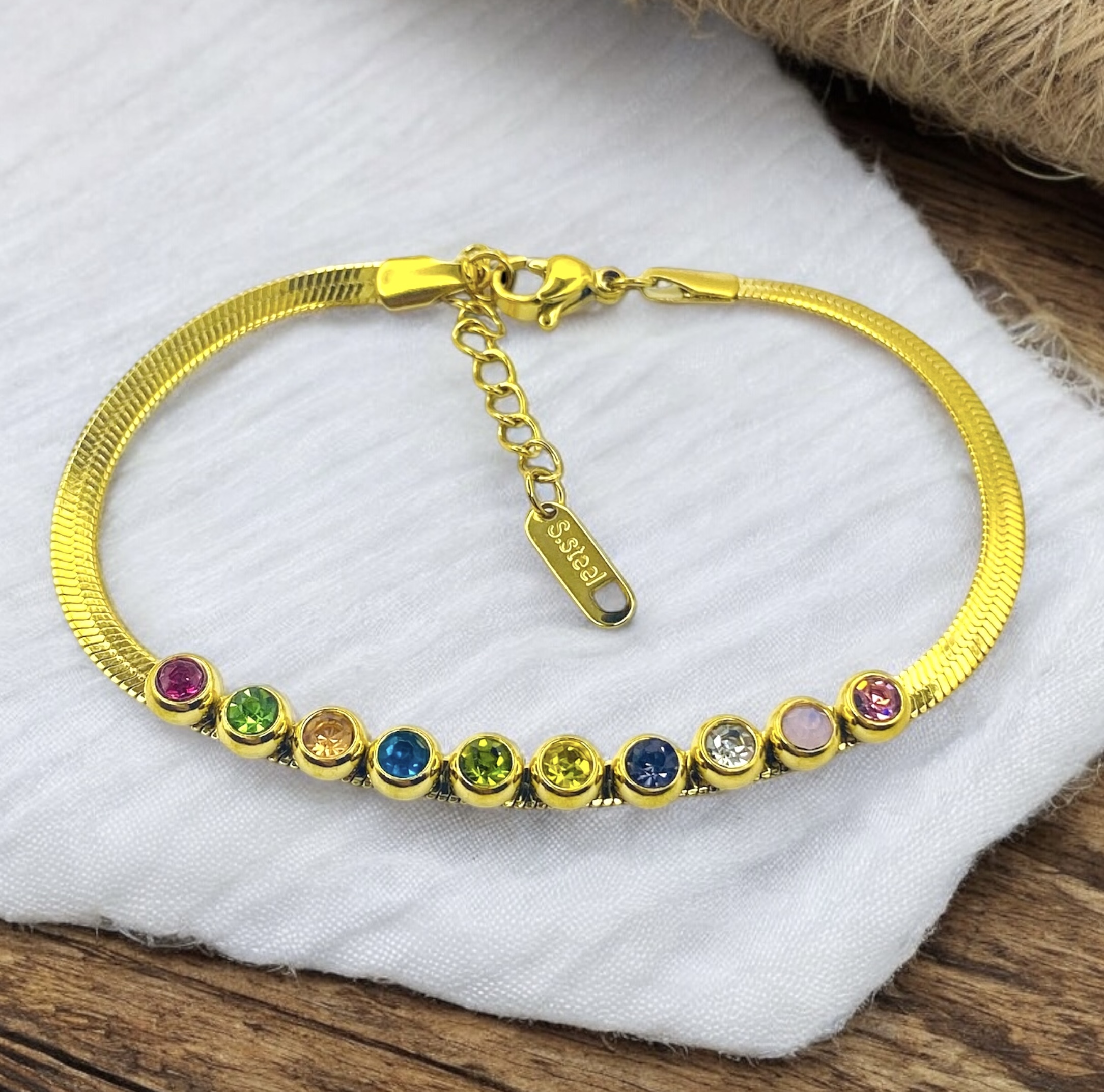 Χρυσό ατσάλινο βραχιόλι με πολύχρωμες πέτρες