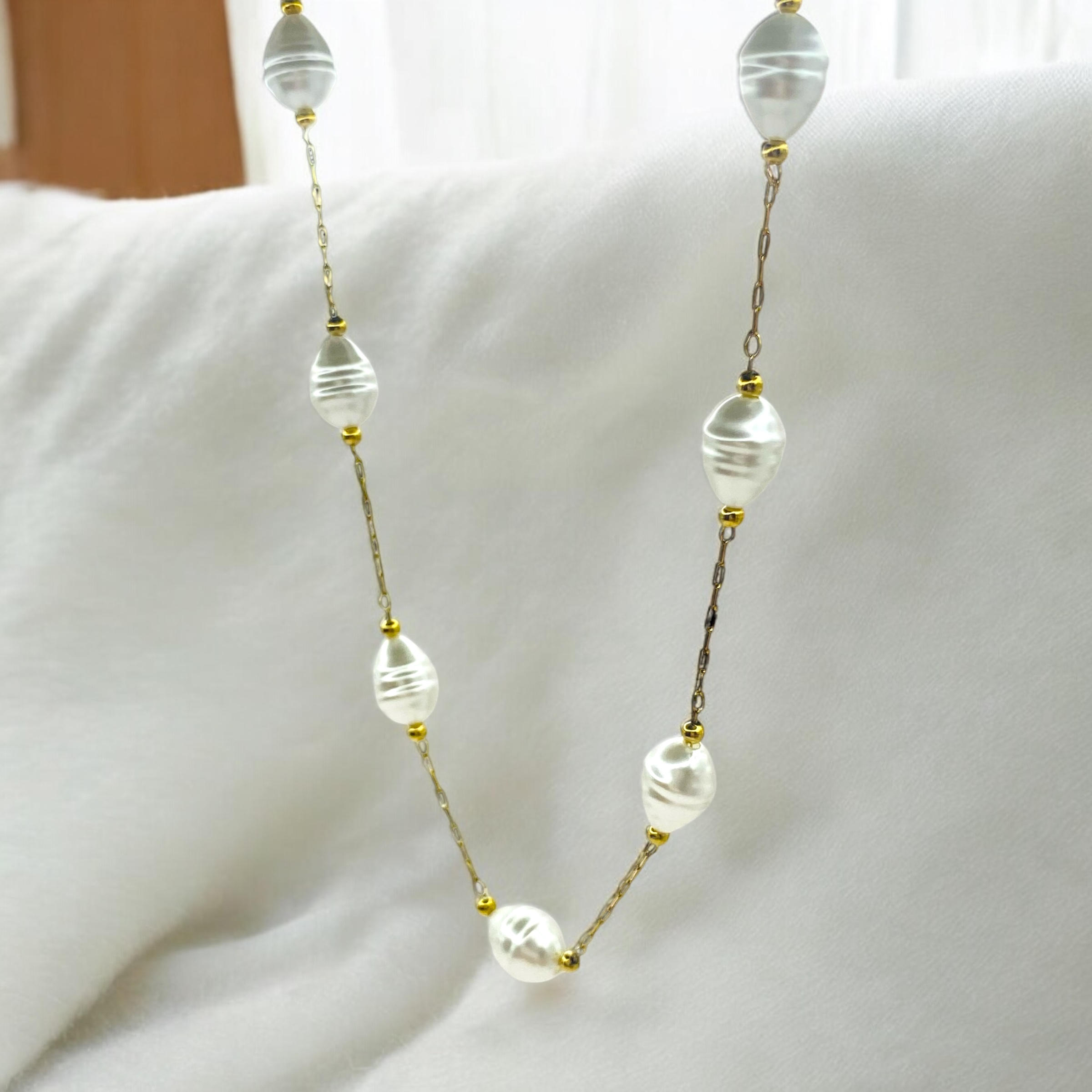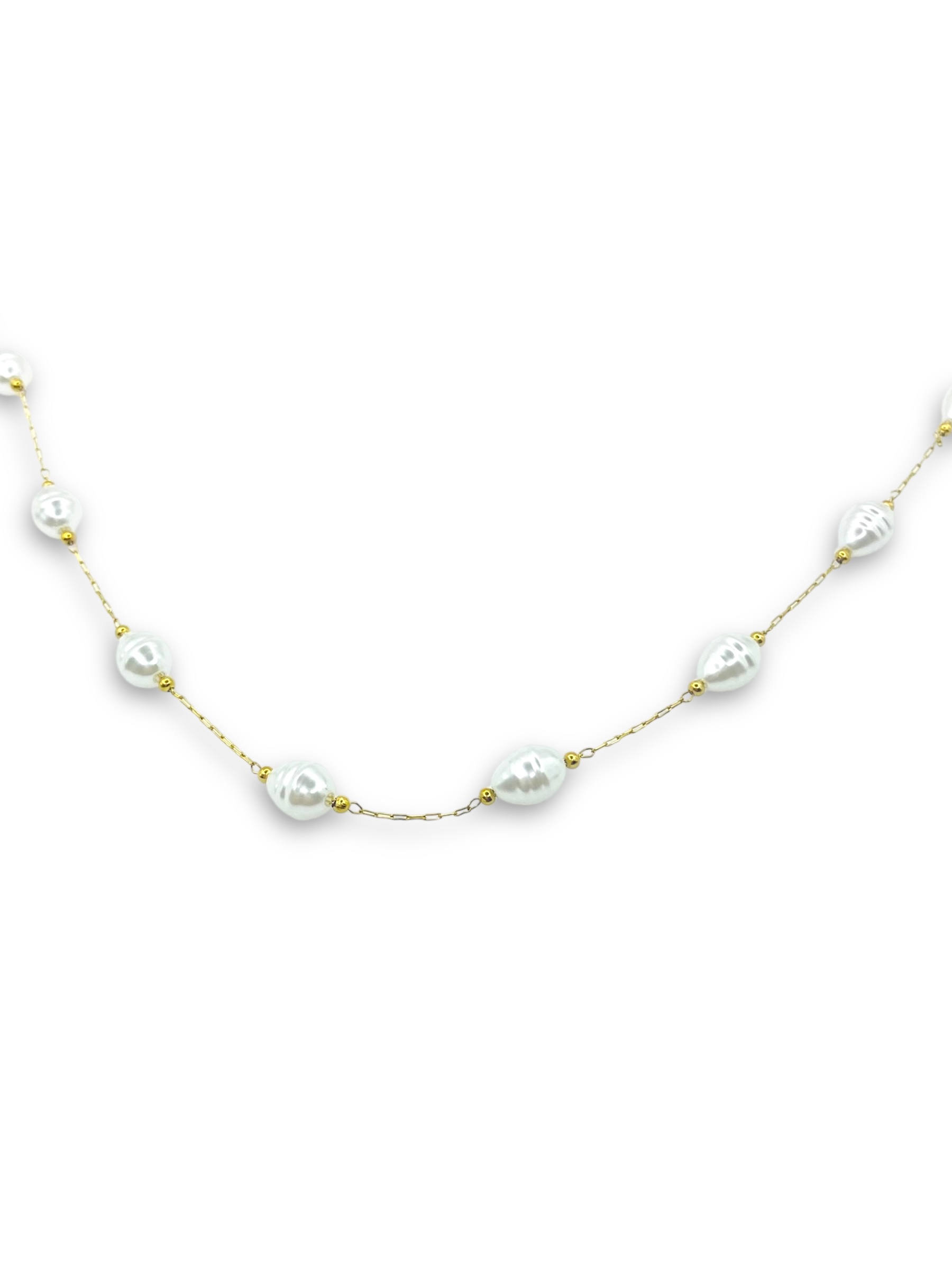 Χρυσό ατσάλινο κολιέ με πέρλες (40+4cm)