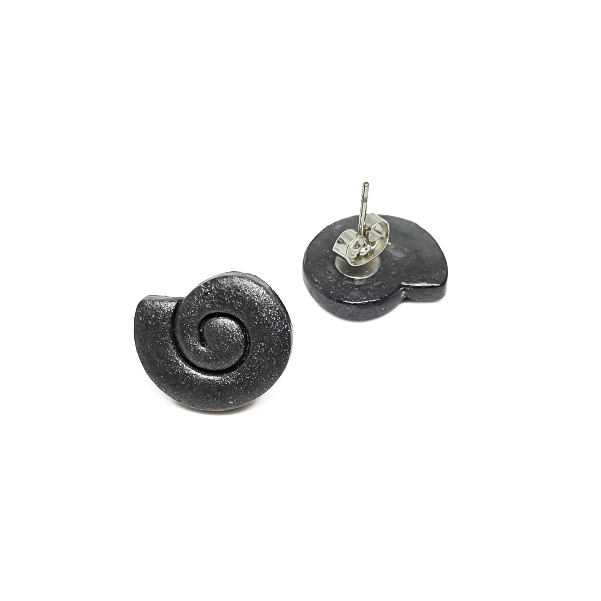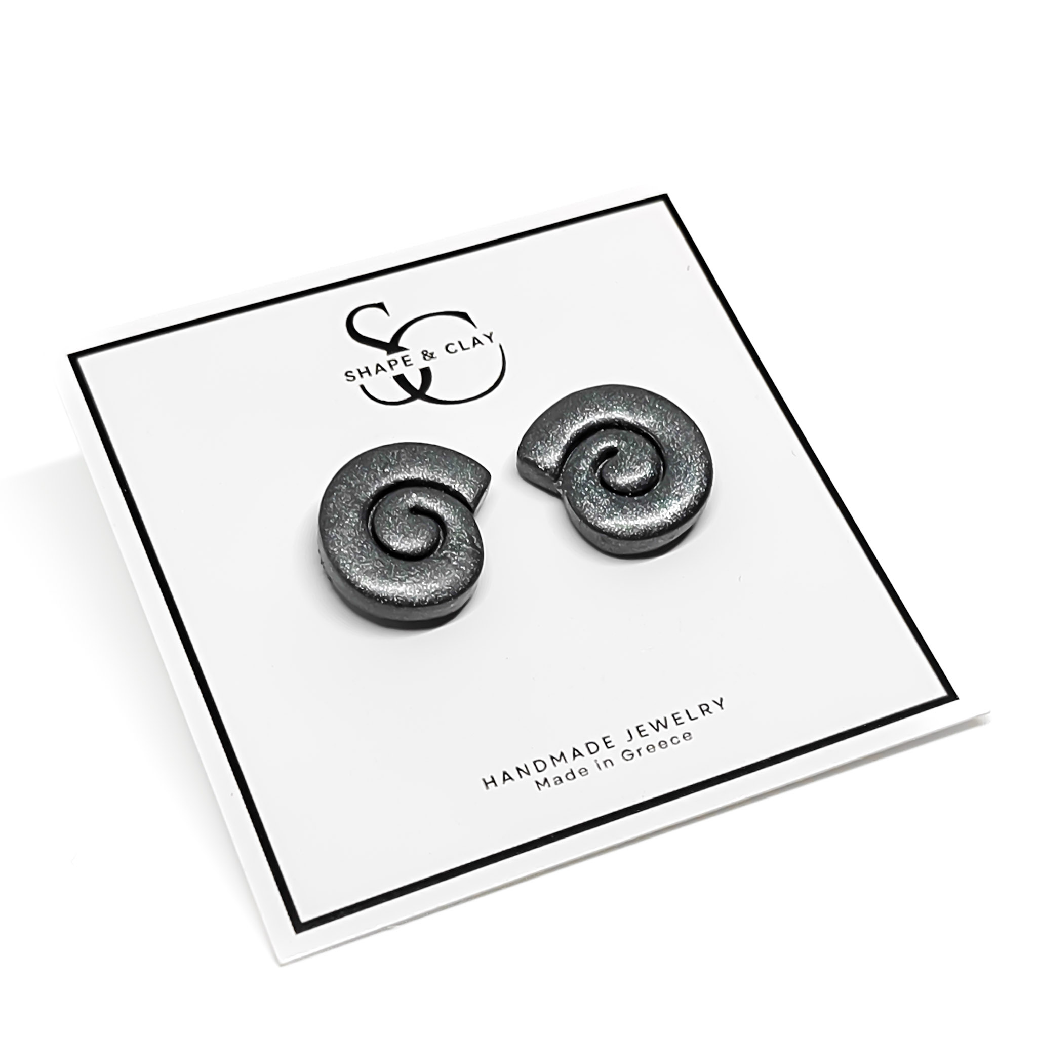 Χειροποίητα σκουλαρίκια κοχλίας σε μαύρο περλέ χρώμα από πολυμερικό πηλό με υποαλλεργικά καρφάκια από ανοξείδωτο ατσάλι. Βερνικωμένα με gloss βερνίκι για προστασία και αντοχή. Ελαφριά και κομψά, ιδανικά για καθημερινή χρήση.