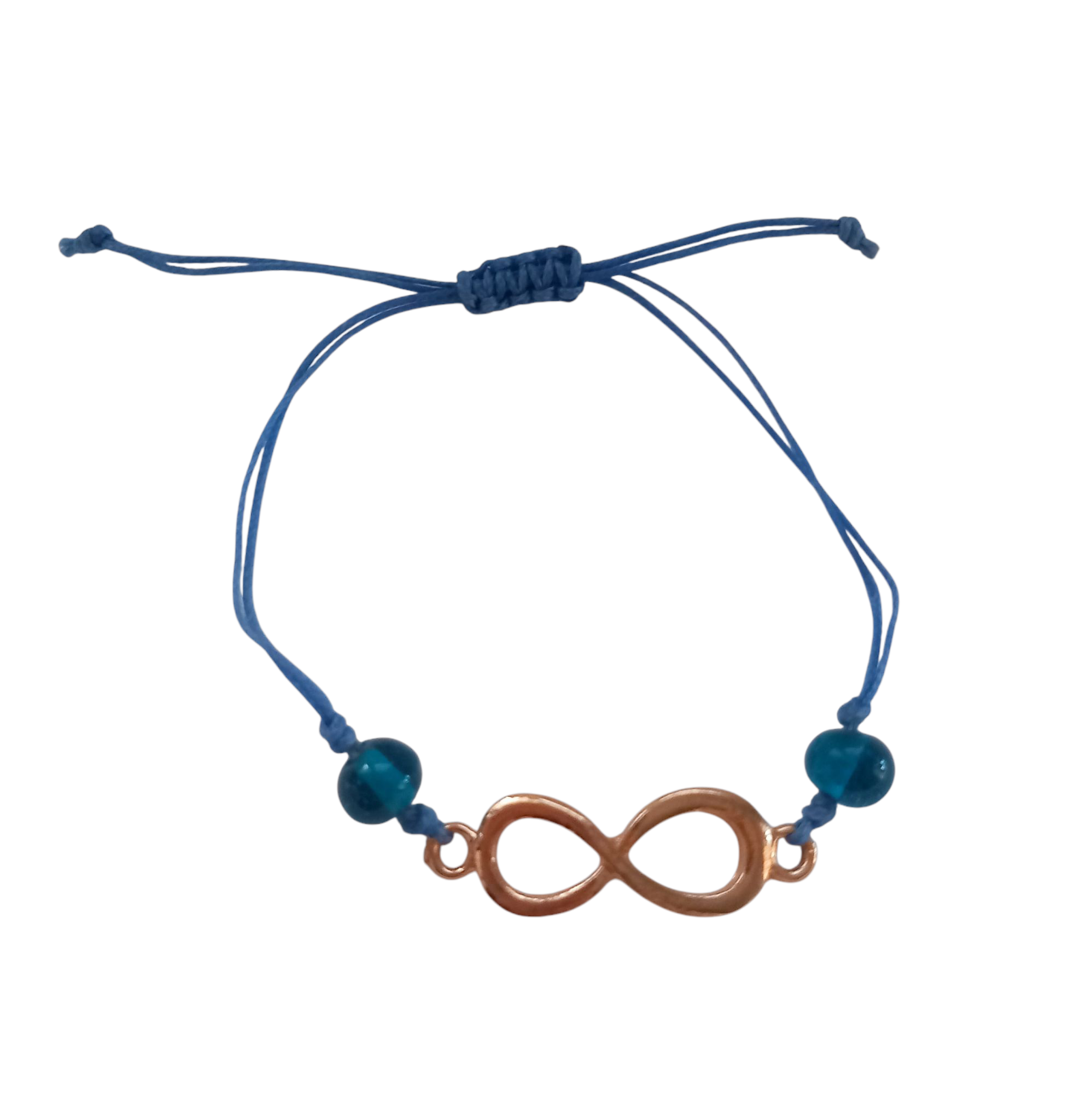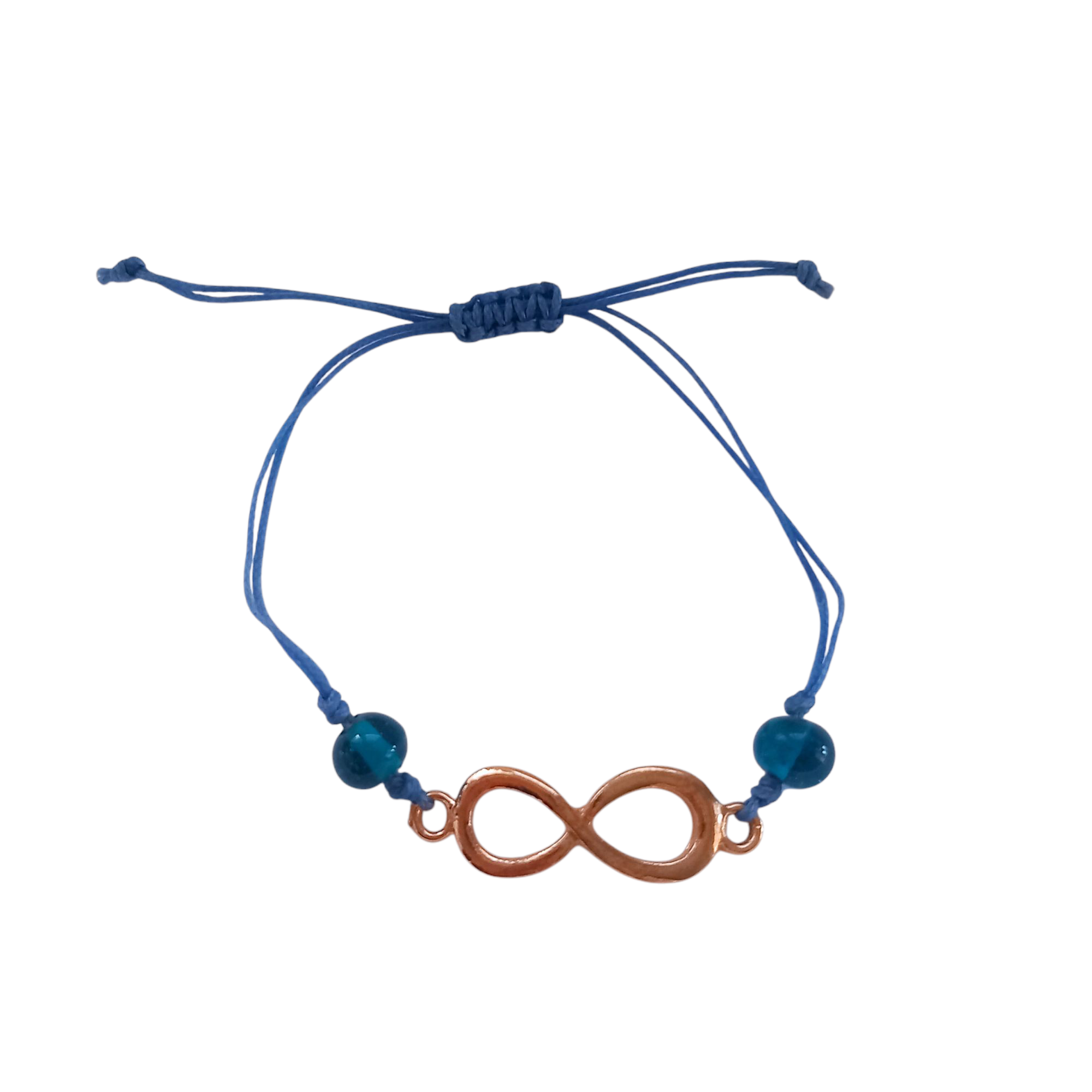Χειροποίητο βραχιόλι με μεταλλικό στοιχείο άπειρο, χάντρες και κούμπωμα μακραμέ.