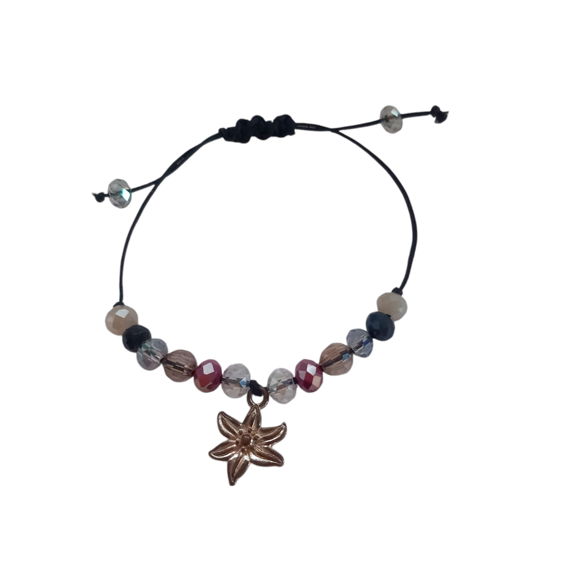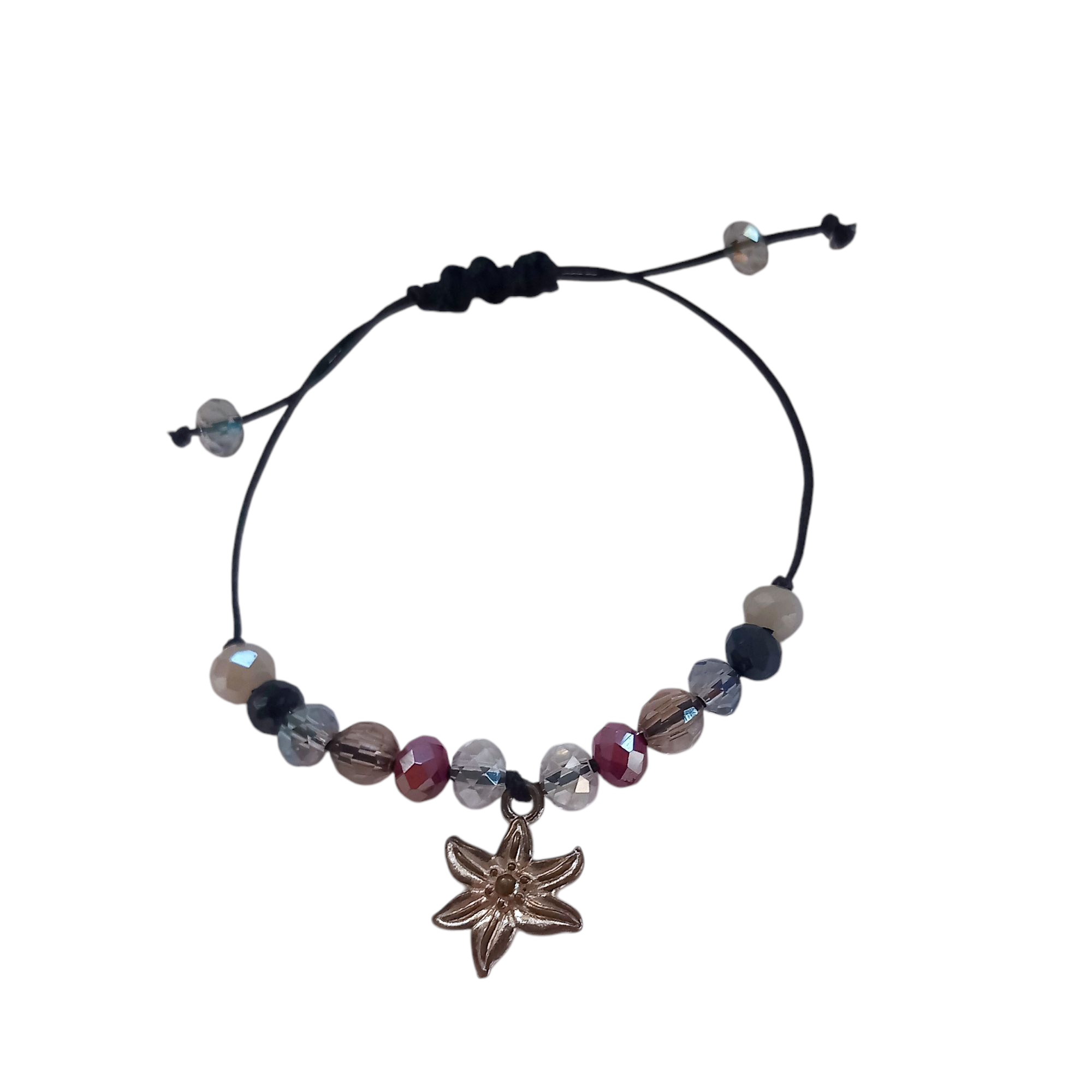 Χειροποίητο βραχιόλι λουλούδι ασημί από ορείχαλκο με χάντρες και κούμπωμα μακραμέ.