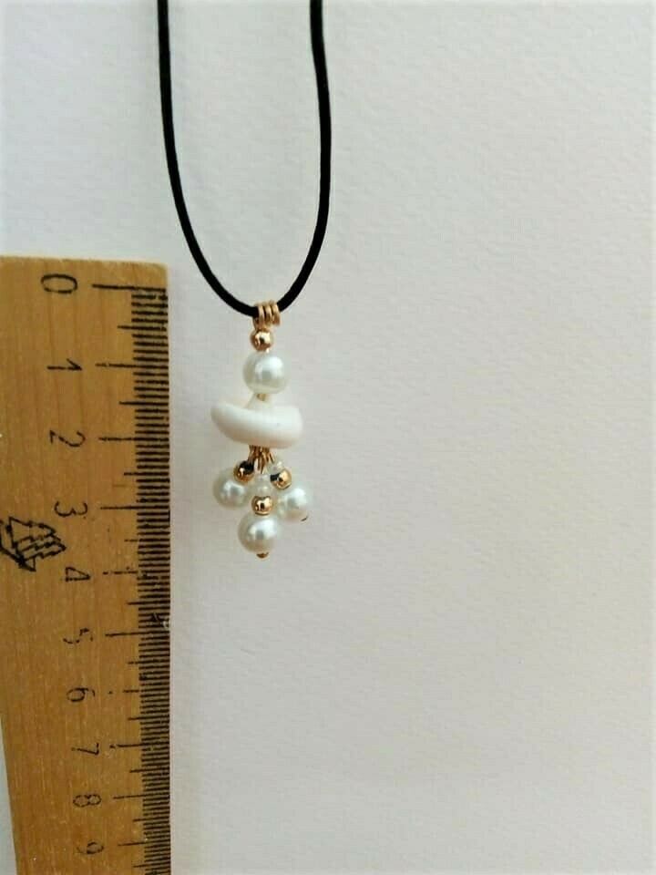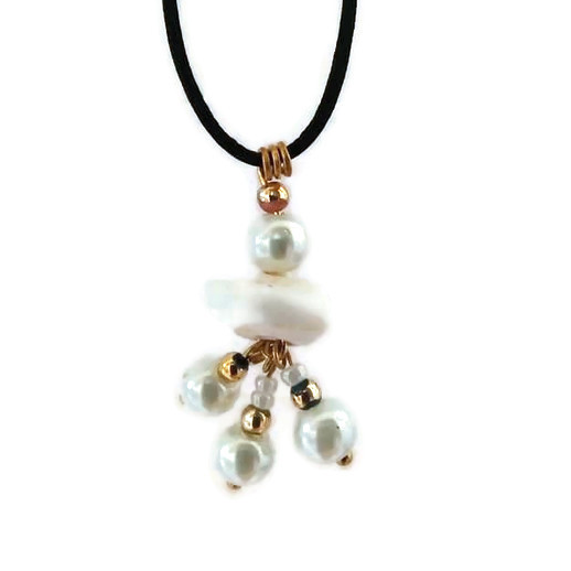 Κολιέ με Κοχύλι φυσικό σε Λευκό Χρώμα με μαύρο κορδόνι 40εκ. με Πέρλες. Μοναδικό χειροποίητο κομμάτι
