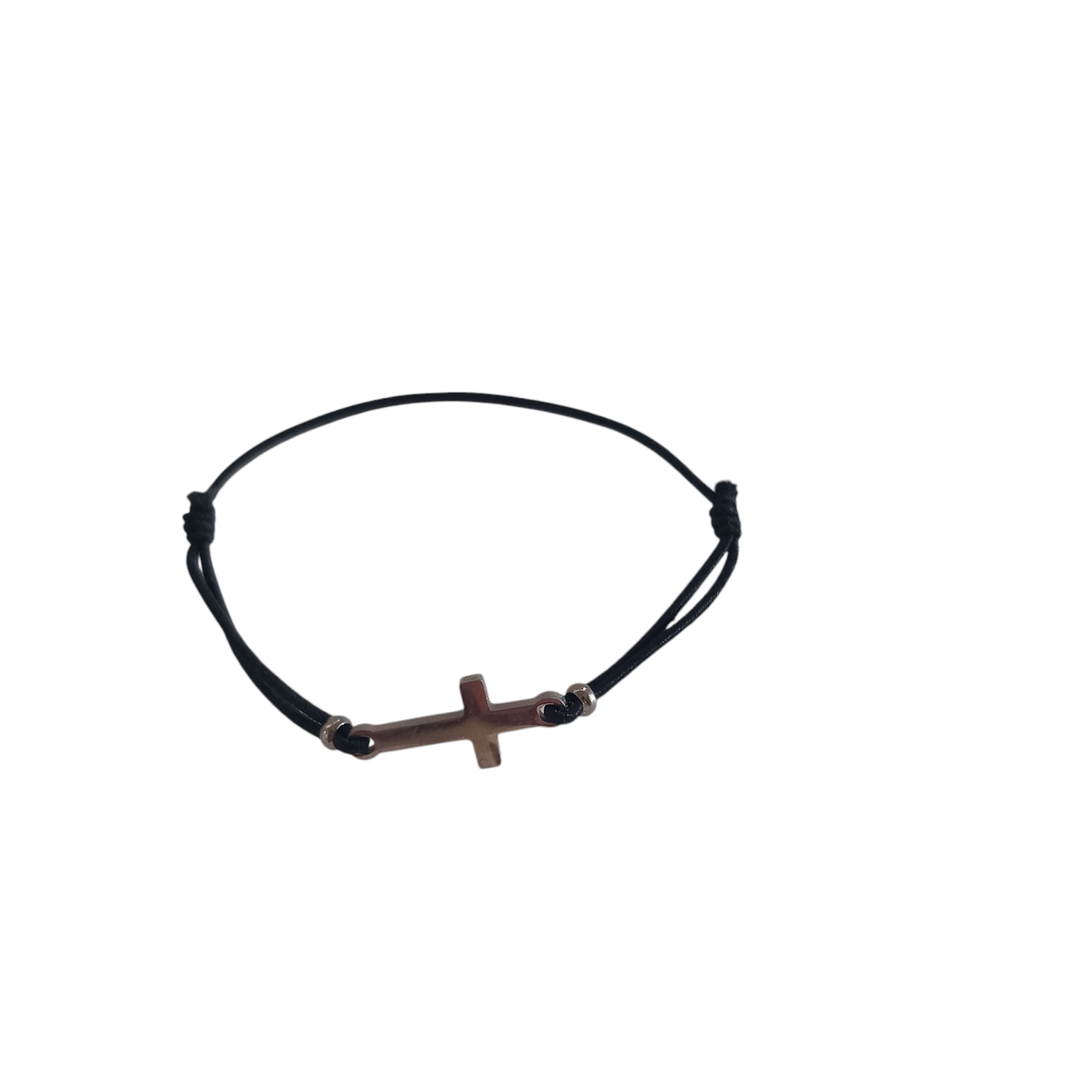 Βραχιόλι σταυρός unisex από ατσάλι με αυξομειούμενο κούμπωμα μακραμέ.