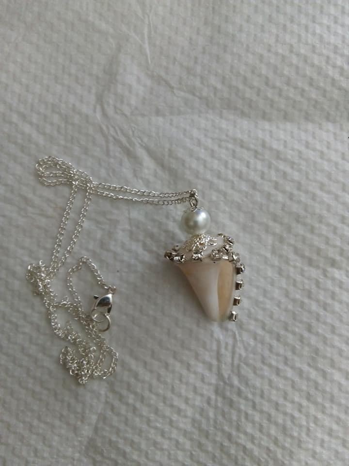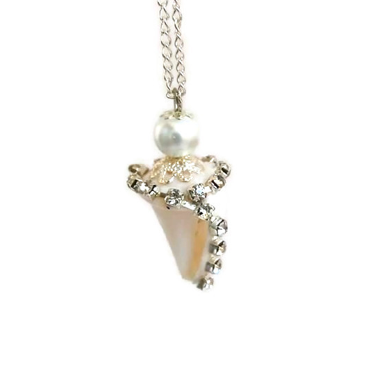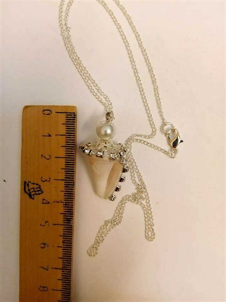 Κολιέ με Κοχύλι φυσικό 25x20mm σε Λευκό Χρώμα με αλυσίδα 58 εκ. Ατσάλι Με Πέρλα ΔΙΑΚΟΣΜΗΜΕΝΟ ΜΕ ΚΡΥΣΤΑΛΛΑ Χειροποίητα κοσμήματα