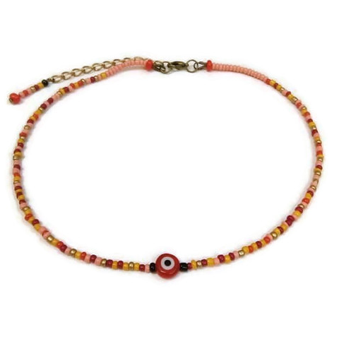 Χειροποίητο Γυναικείο Κολιέ Μάτι γυάλινο με Πολύχρωμες χάντρες
