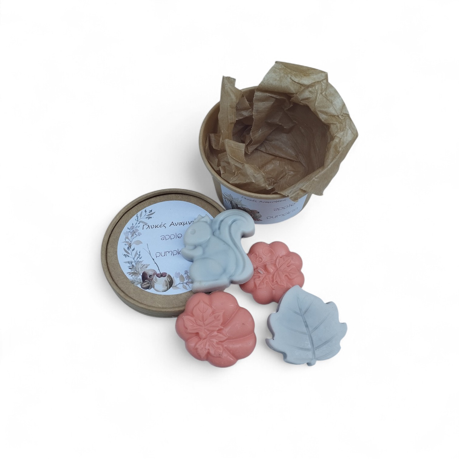 Περιέχει 4 μεγάλα wax melt σε άρωμα pumpkin apple που μπορείτε να χρησιμοποιήσετε και σε μικρότερο melter σπάζοντας τα σε κομμάτια ή απλά να διακοσμήσετε το χώρο σας.
