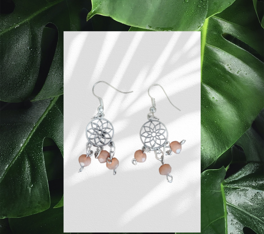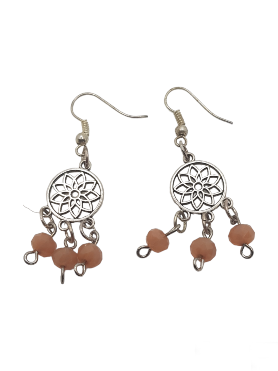 ~ Stainless steel γάντζος με κρεμαστό μεταλλικό ζάμακ χυτό μοτίφ ονειροπαγίδα και ροζ γυάλινες χάντρες κρυσταλλάκι.