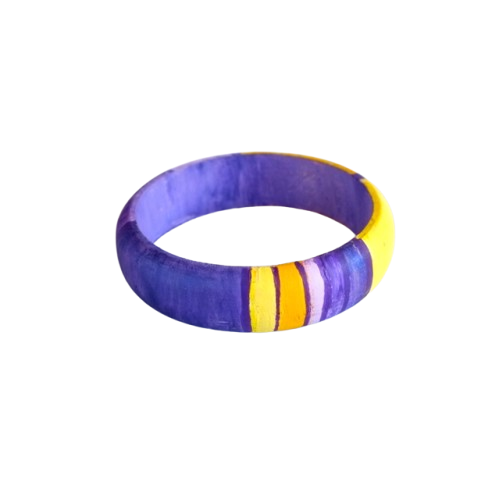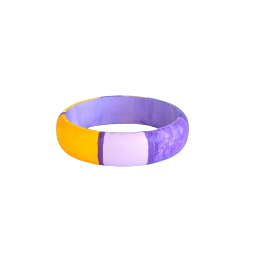 Ξύλινο Βραχιόλι ζωγραφισμένο μωβ-κίτρινο