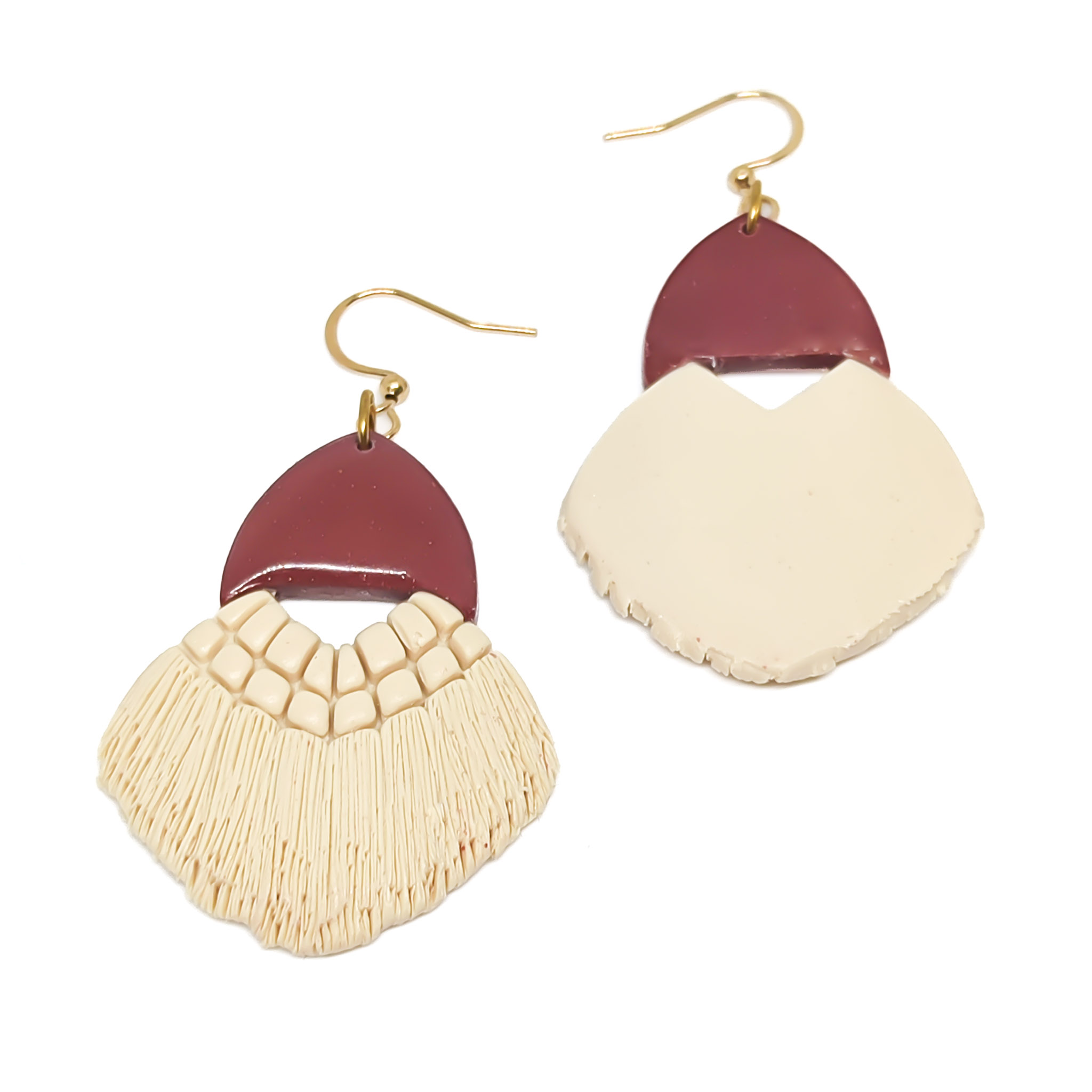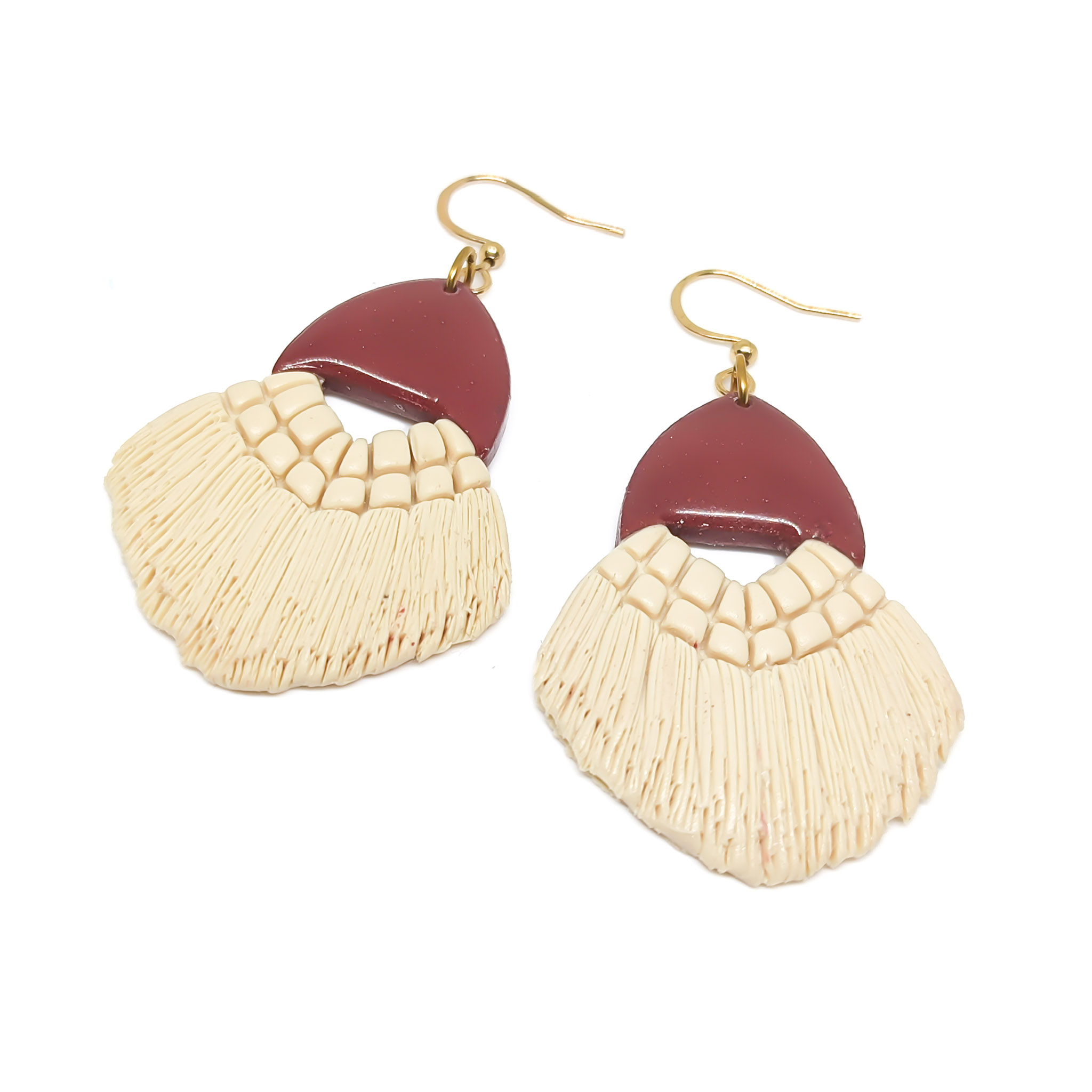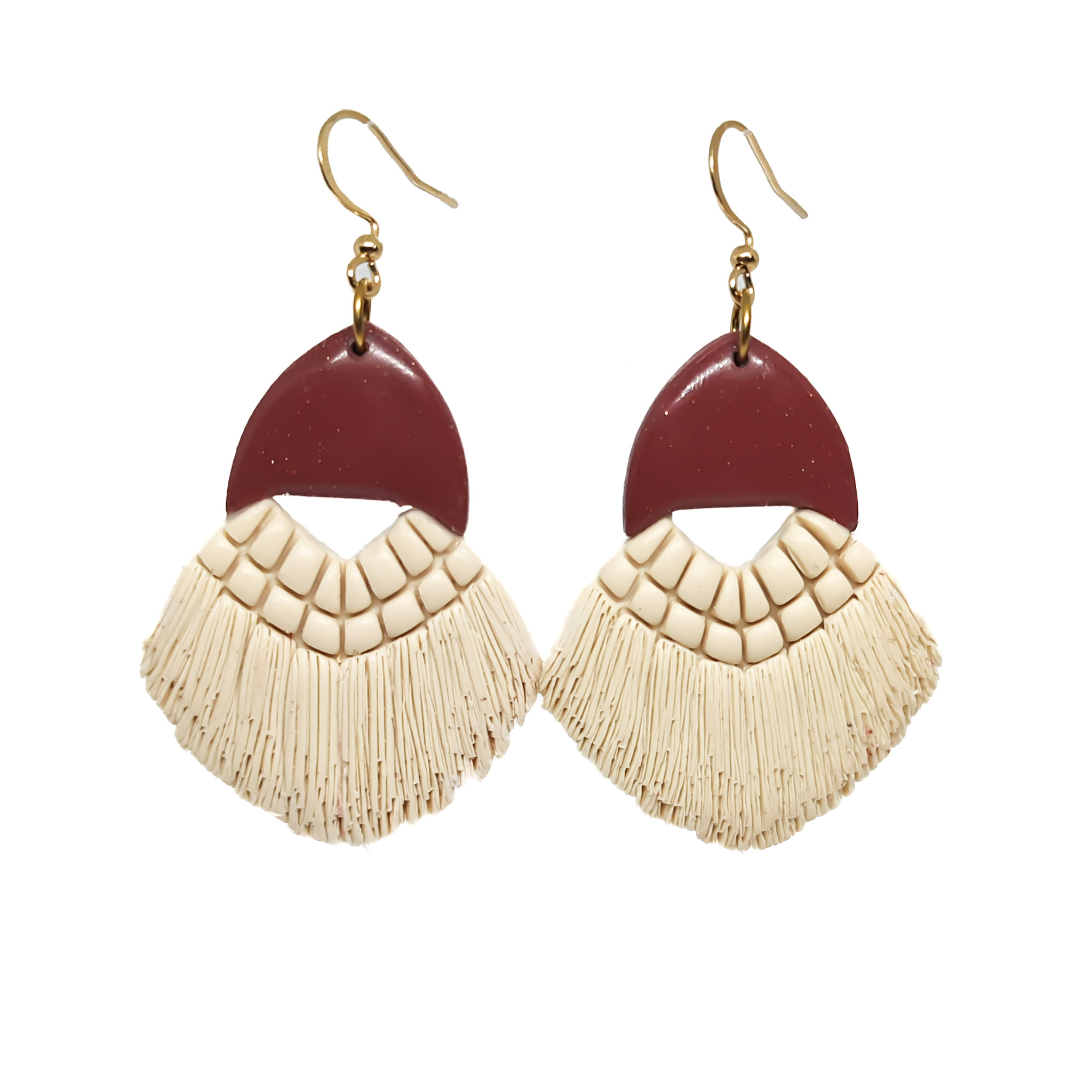 Μοναδικά χειροποίητα κρεμαστά καρφωτά σκουλαρίκια από πολυμερικό πηλό. Μία boho αισθητική ιδανική για το καλοκαίρι. Οι γάντζοι είναι από επιχρυσωμένο ανοξείδωτο ατσάλι. Τα σκουλαρίκια έχουν επίστρωση βερνικιού για προστασία.
