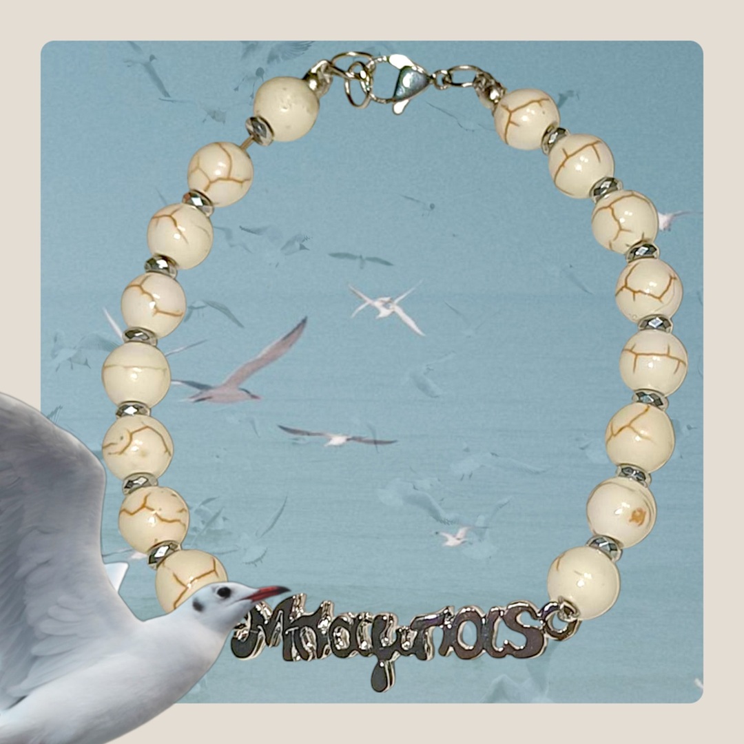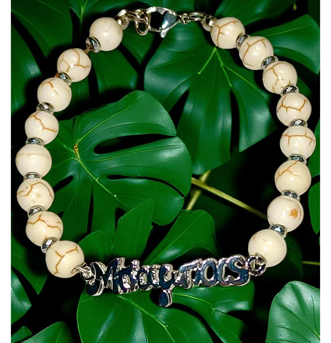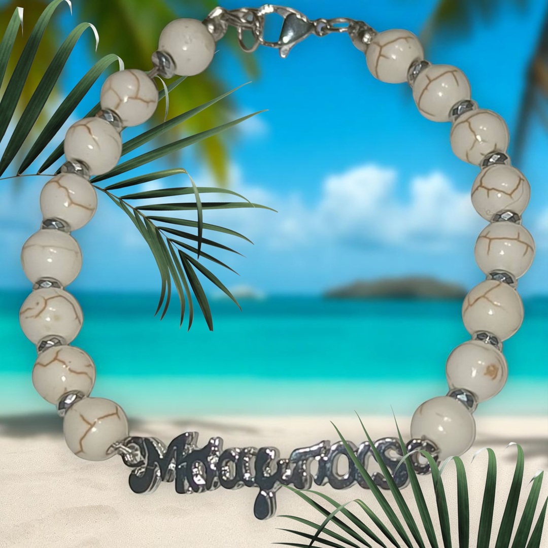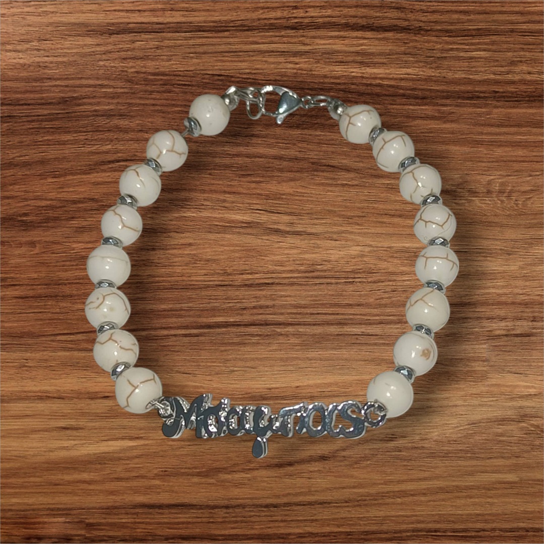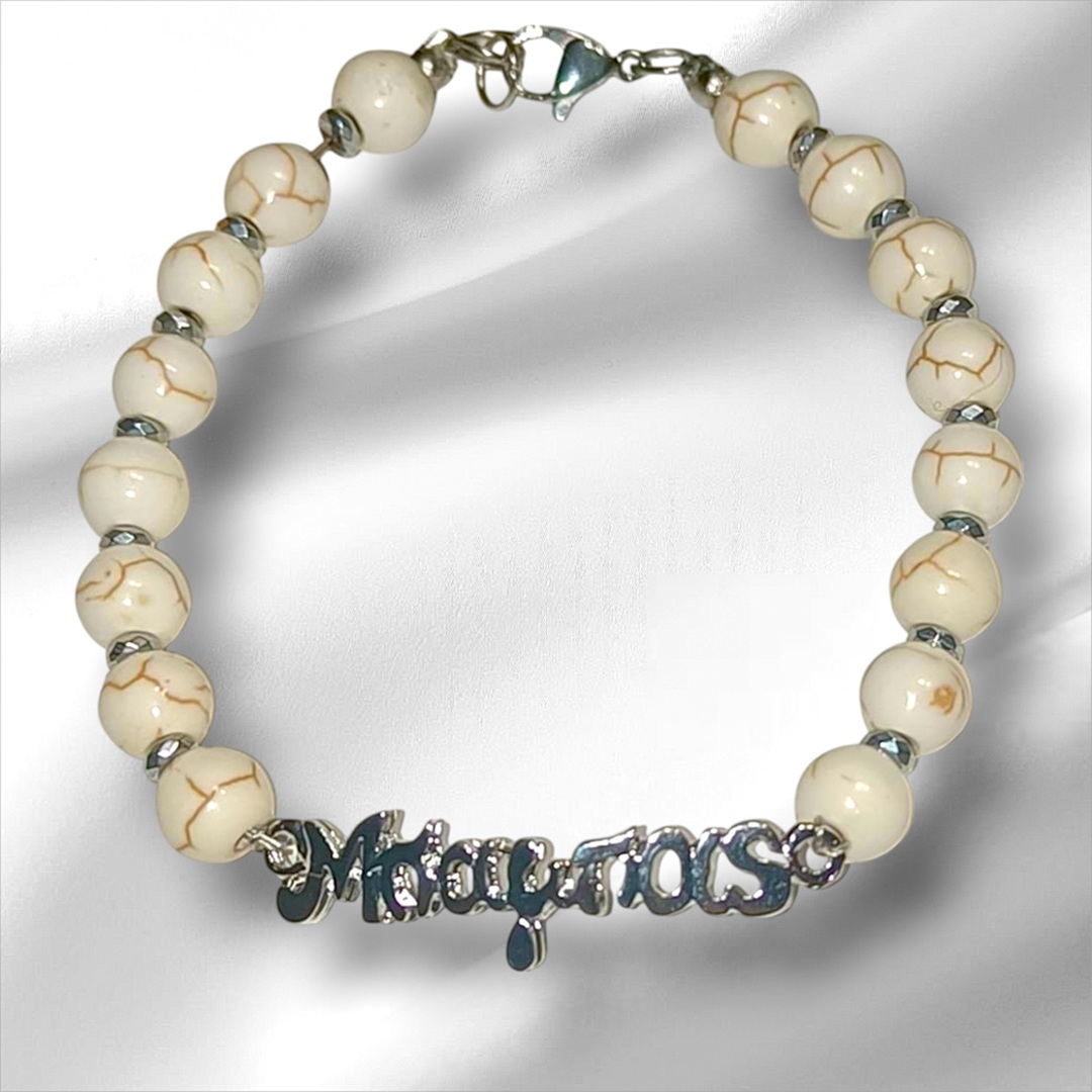 Χειροποιητο Ανδρικο Βραχιολι με Ημιπολυτιμους λιθους Χαολιτη και Αιματιτη και ατσαλινο στοιχειο -Μπαμπας-.Αυξομειουμενο