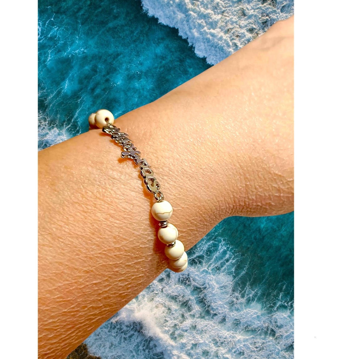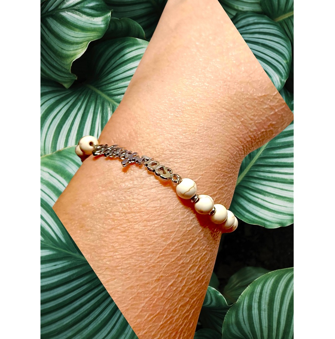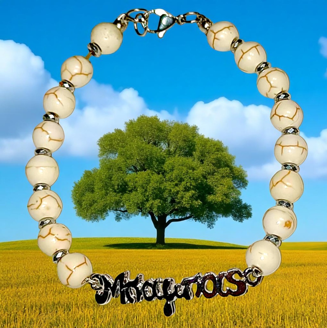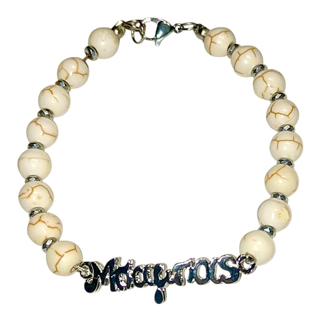Χειροποιητο Ανδρικο Βραχιολι με Ημιπολυτιμους λιθους Χαολιτη και Αιματιτη και ατσαλινο στοιχειο -Μπαμπας-.Αυξομειουμενο