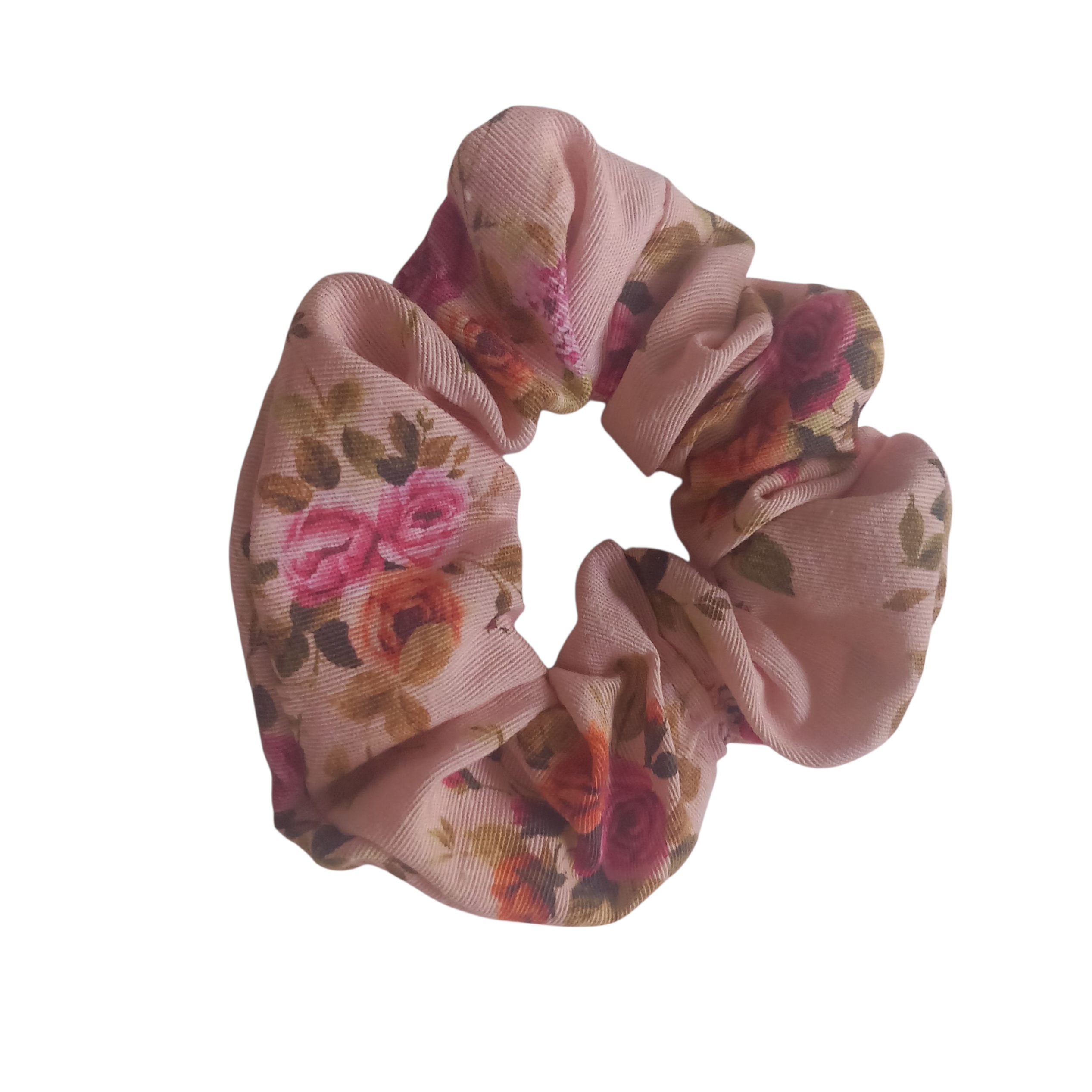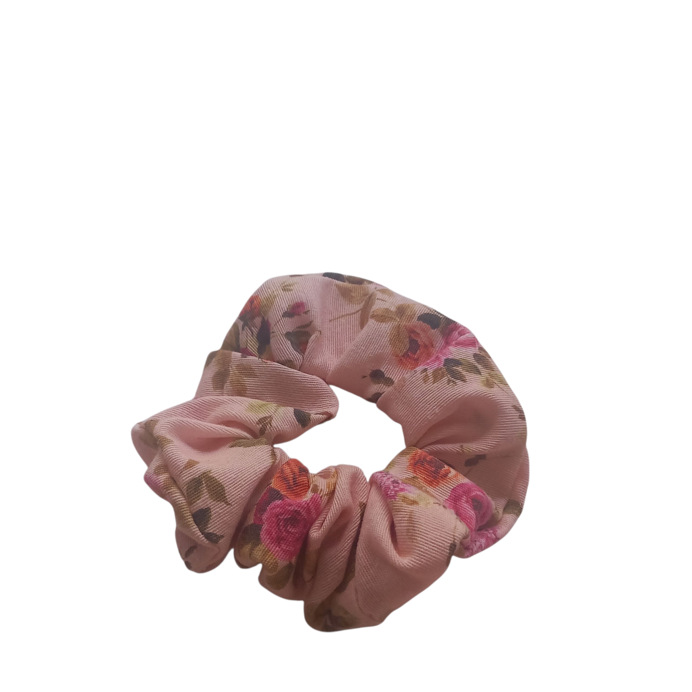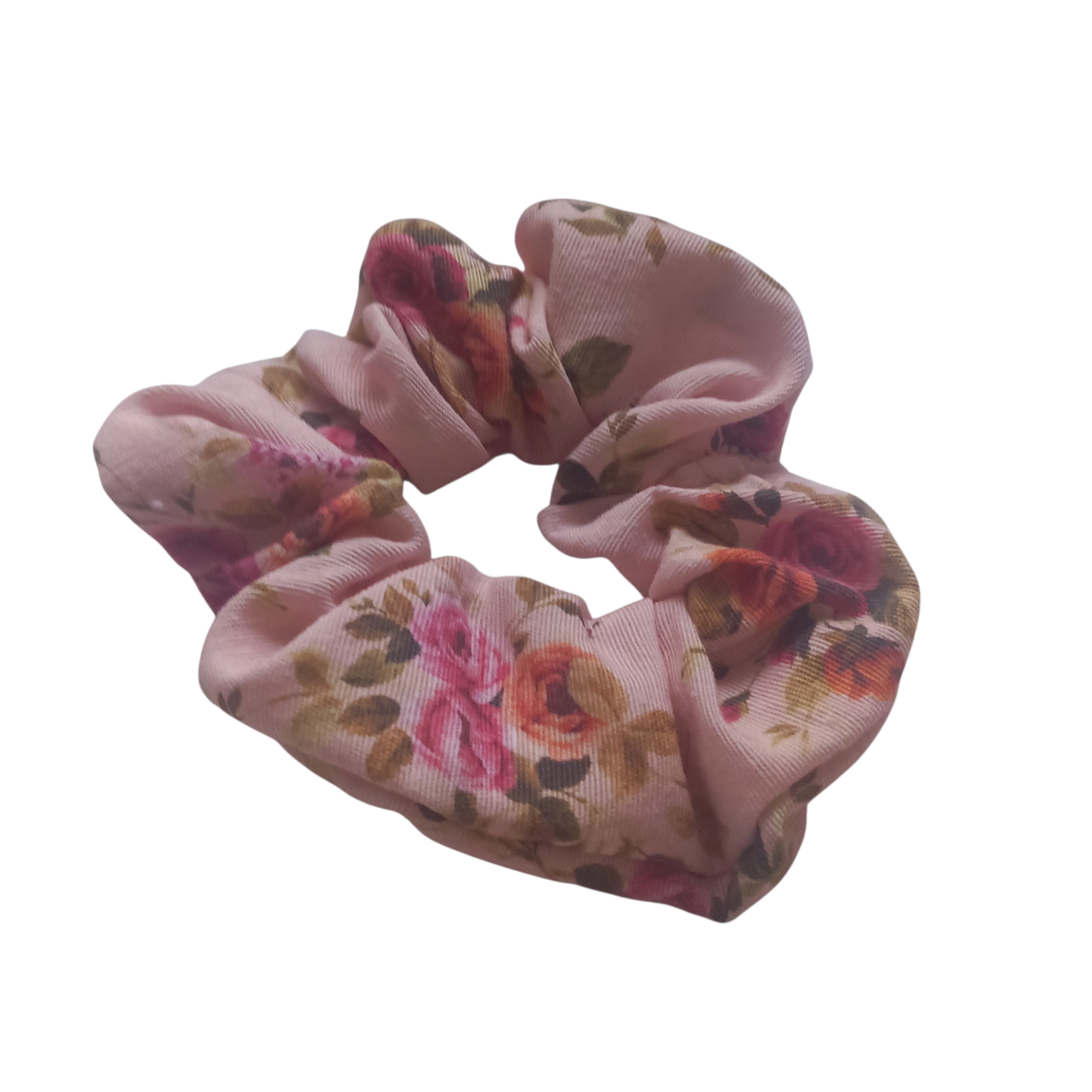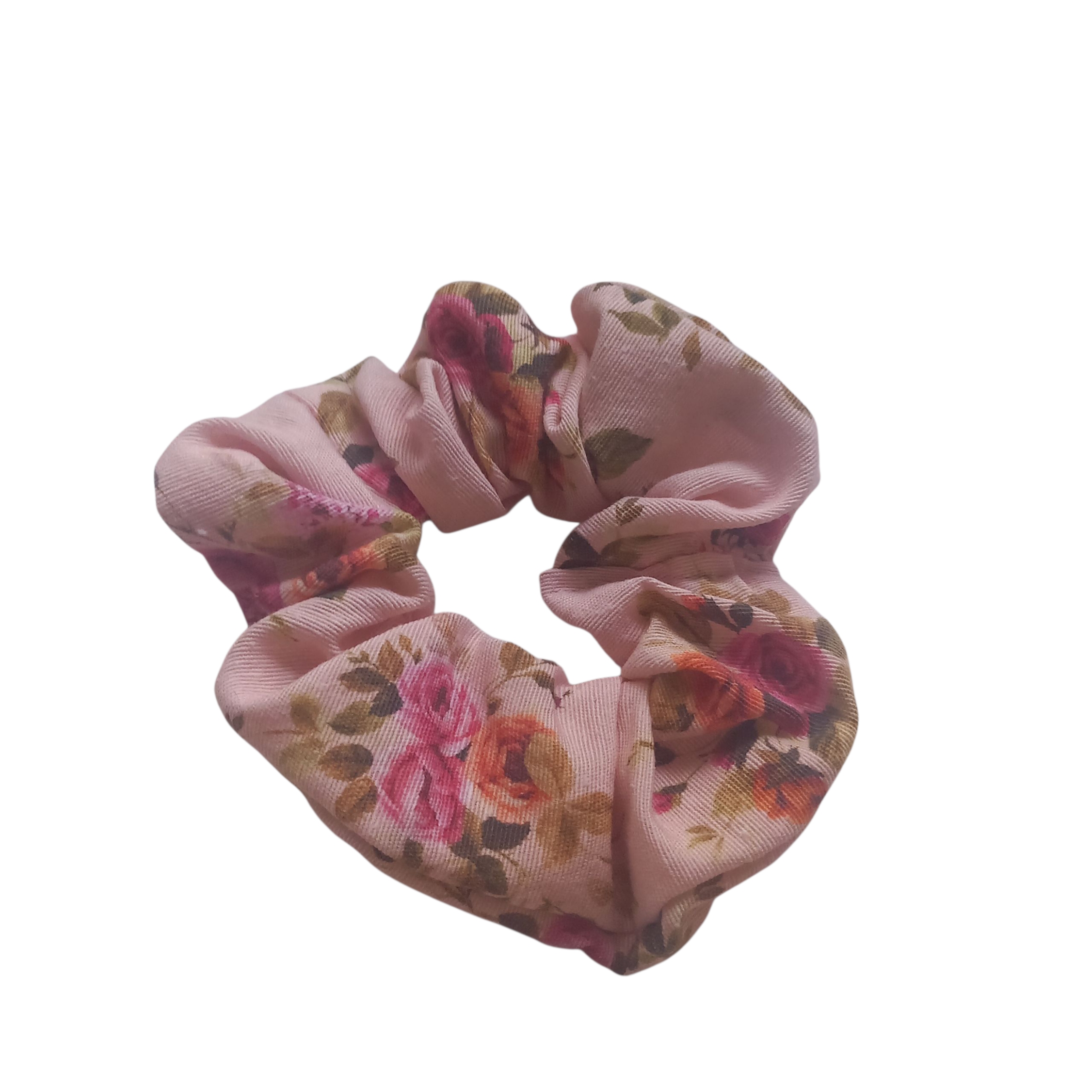 Χειροποίητο scrunchie ροζ φλοράλ από καραβόπανο.