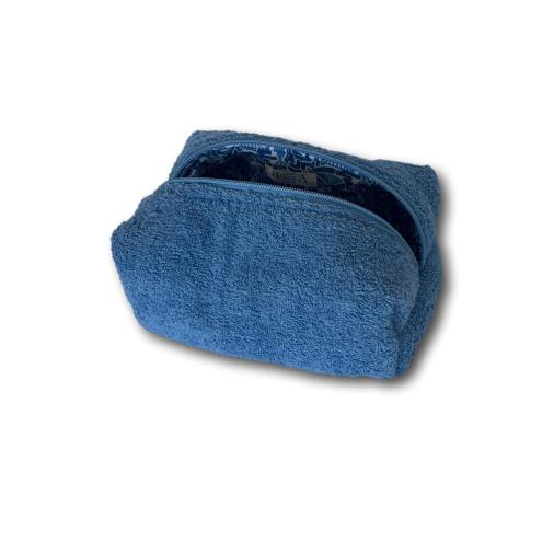 Blue terry makeup bag