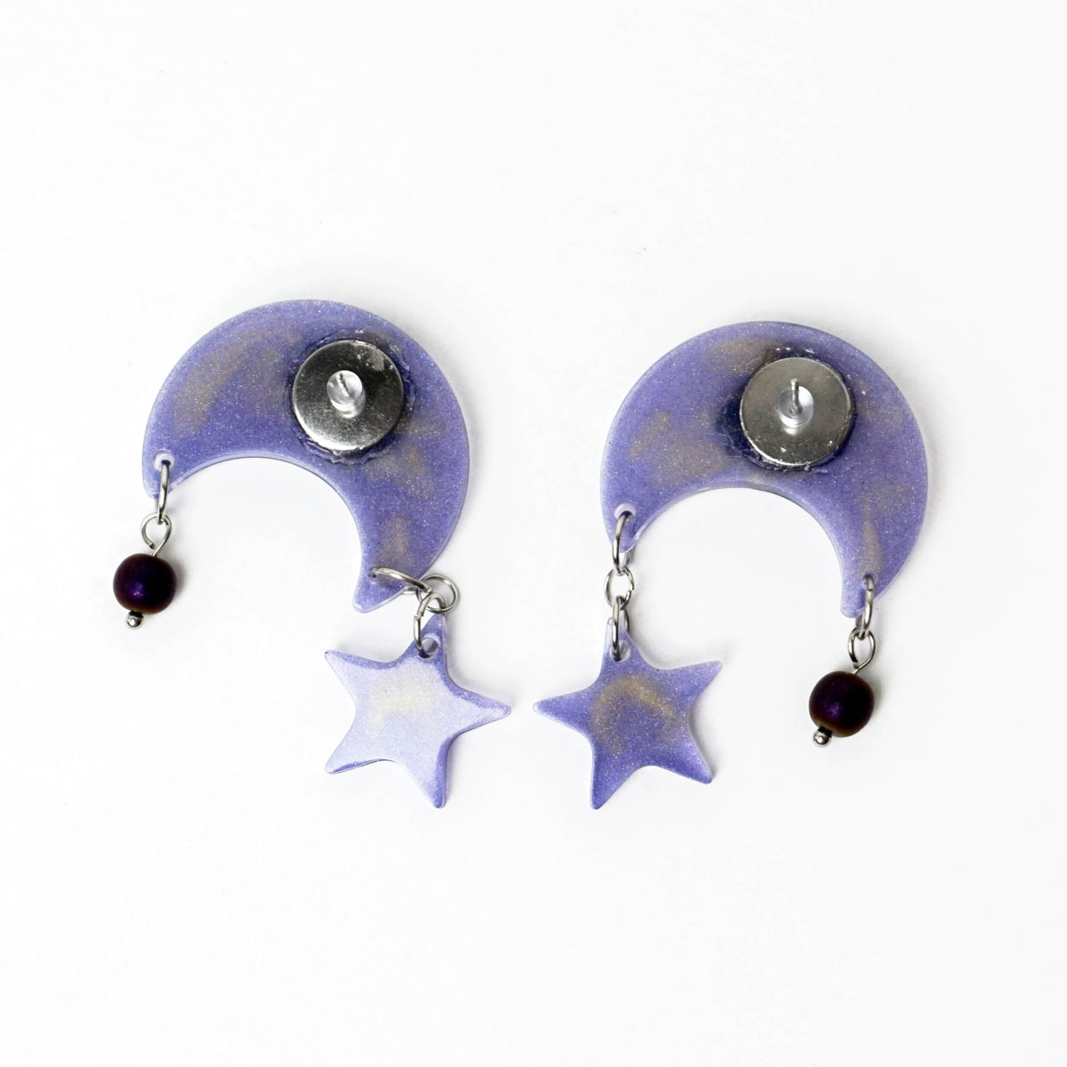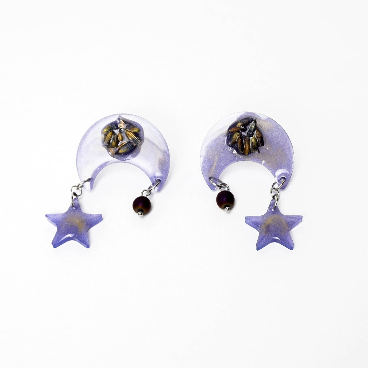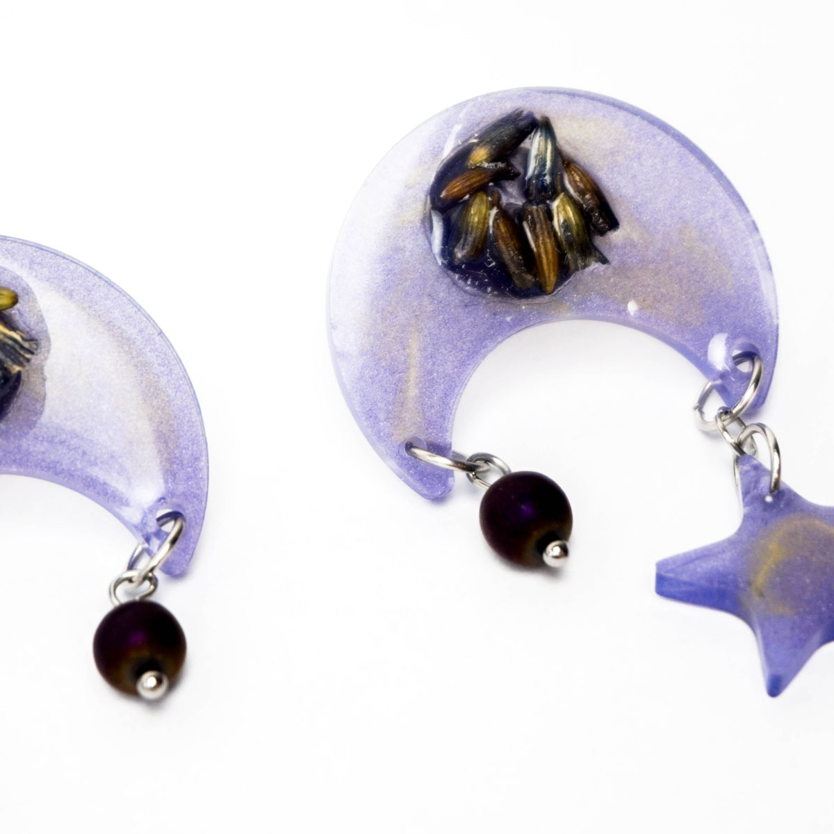 Σκουλαρίκια καρφωτά “Μωβ Φεγγάρι” από ρητίνη
