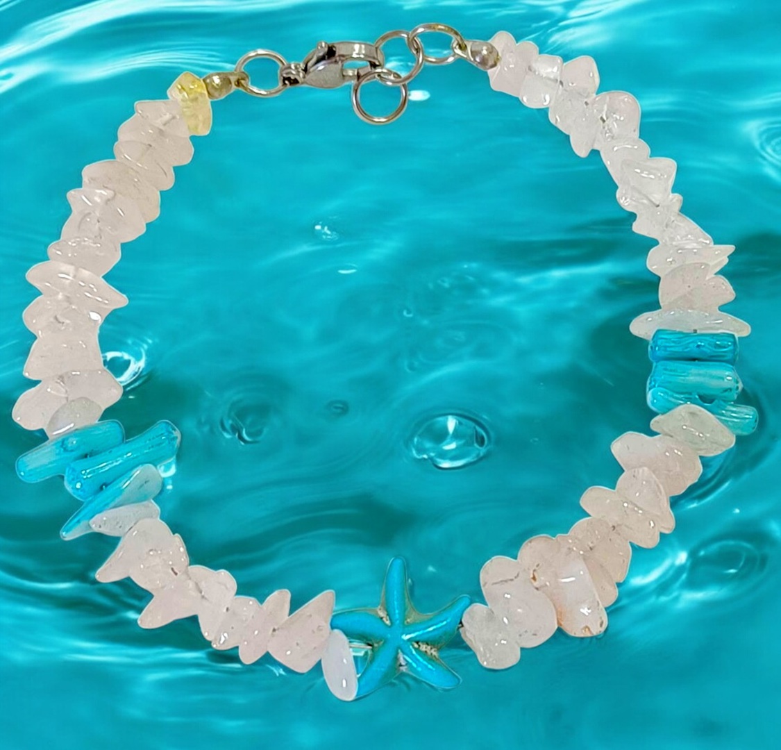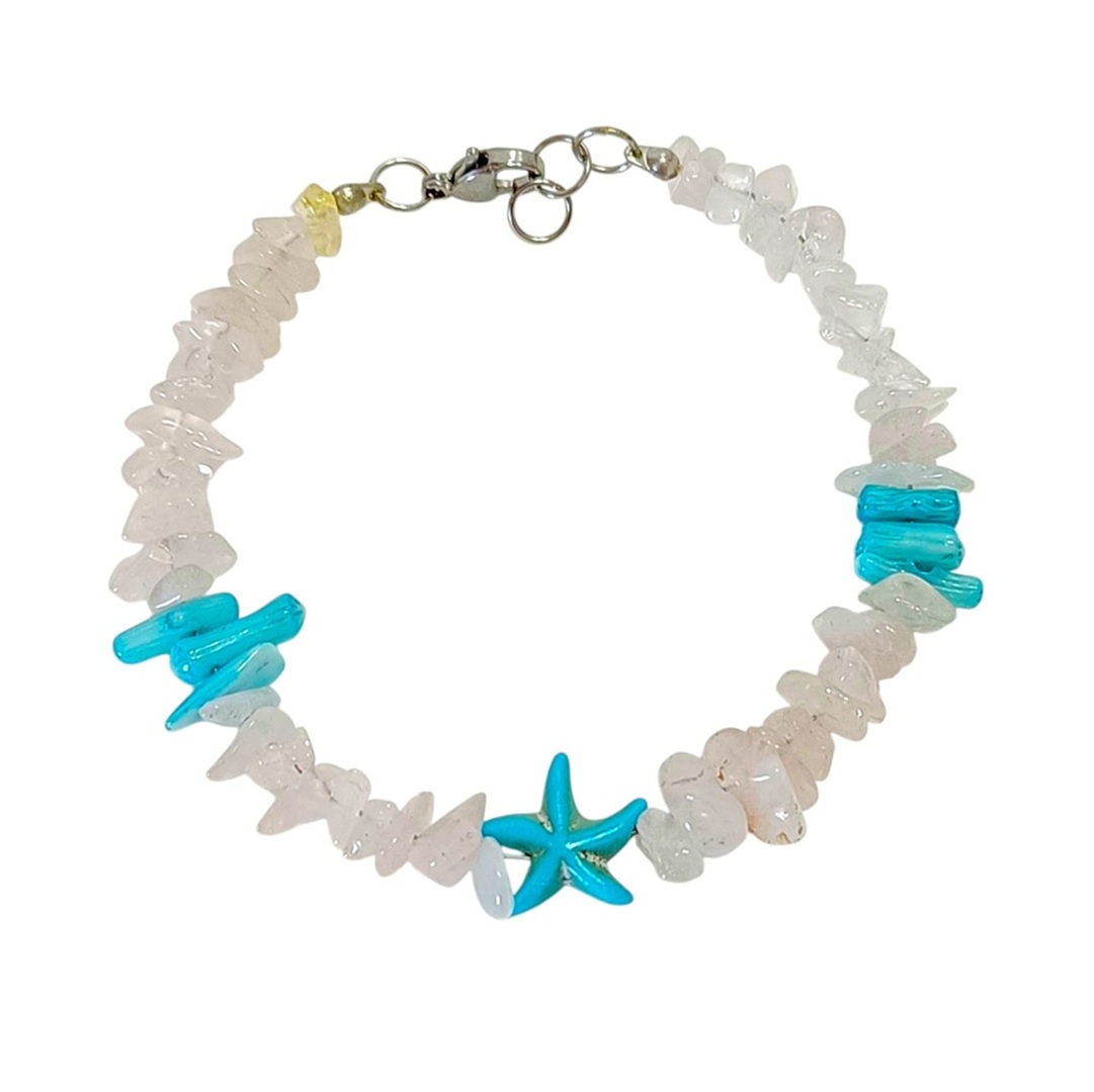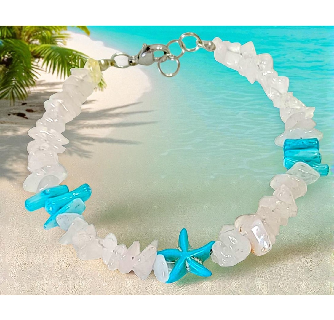 Χειροποιητο Βραχιολι με Ημιπολυτιμους λιθους ΧΑΛΑΖΙΑ – ΚΟΡΑΛΙΑ – ΑΙΜΑΤΙΤΗ .Ιδανικο και για το χερι και για το ποδι. Στα χρωματα του καλοκαιριου , το απολυτο beach chic look