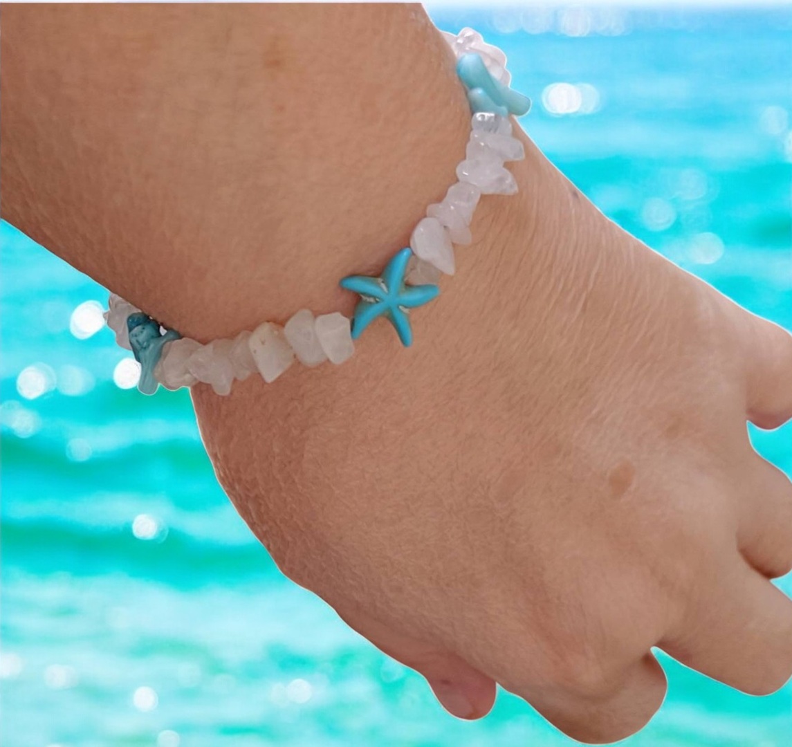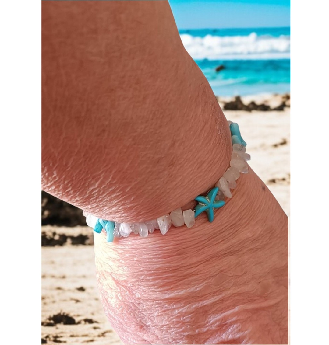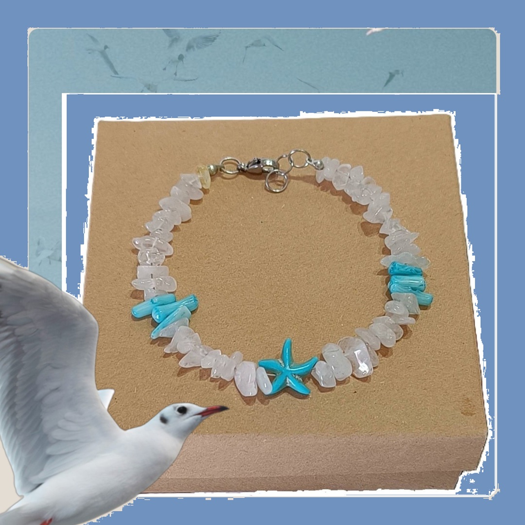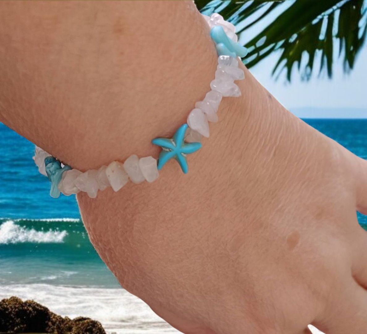Χειροποιητο Βραχιολι με Ημιπολυτιμους λιθους ΧΑΛΑΖΙΑ – ΚΟΡΑΛΙΑ – ΑΙΜΑΤΙΤΗ .Ιδανικο και για το χερι και για το ποδι. Στα χρωματα του καλοκαιριου , το απολυτο beach chic look
