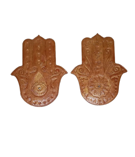 Δύο χειροποίητες βάσης για stick Χαμσα γνωστό και ως το χέρι τής Φατμας είναι ένα αρχαίο φυλαχτό επίσης θεωρείται σύμβολο προστασίας φέρνει την αφθονία την υγεία την ευτυχία καί καλή τύχη είναι ζωγραφισμένο στο χέρι διαστάσεις 12cm x 9cm