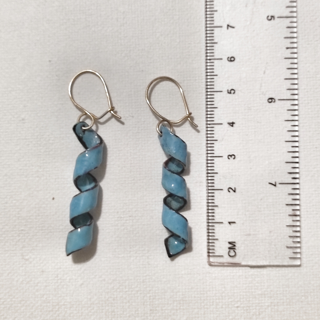 Κρεμαστά σκουλαρίκια με ασημένιους γάντζους από καθαρό ασήμι 924 , επικάλυψη σμάλτου ψημένο στους 750°C στο χάλκινο στριφτό σκουλαρίκι εξ ολοκλήρου χειροποίητα .