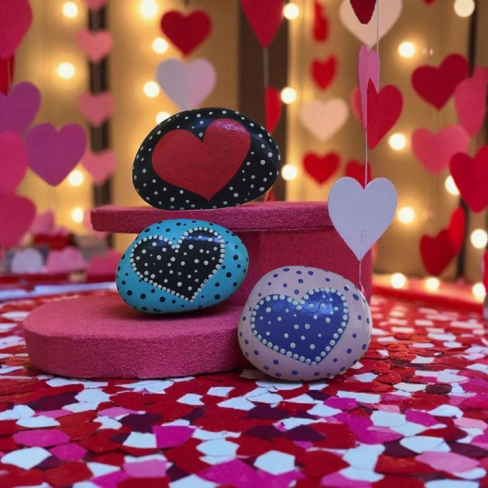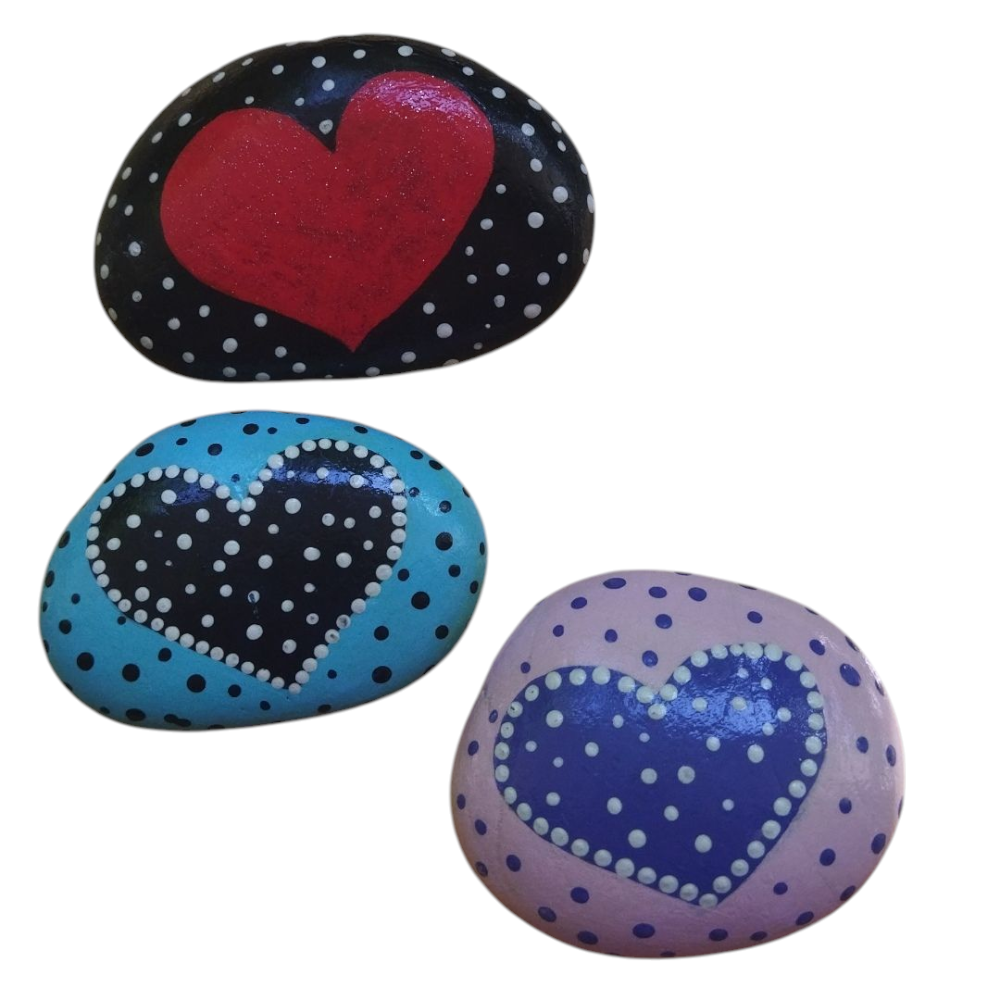 Dot hearts, σετ από 3 ζωγραφισμένα βότσαλα.