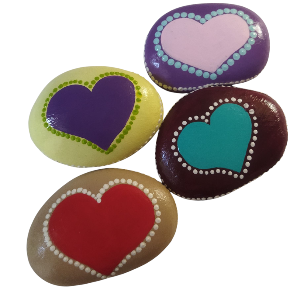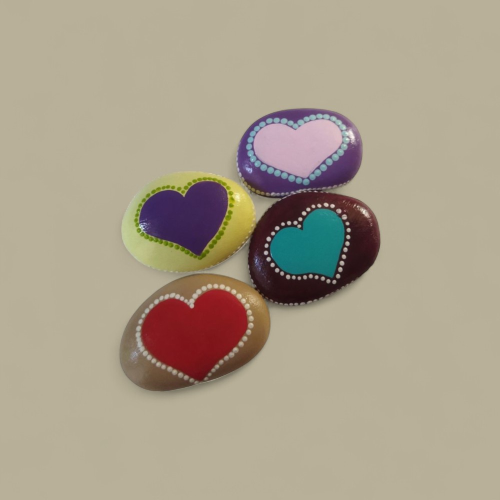 Colorful hearts, σετ από 4 ζωγραφισμένα βότσαλα.