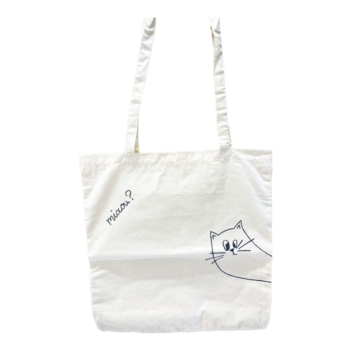 Για τις γατομάνες και τις φίλες των τετράποδων, αυτή η τσάντα είναι must-have! 🐱 Η παιχνιδιάρικη γατούλα που ξεπροβάλλει με το “miaou?” θα σου φτιάχνει τη διάθεση κάθε φορά που την κρατάς. Φτιαγμένη από καμβά, ραμμένη και ζωγραφισμένη στο χέρι, είναι ιδανική για καθημερινή χρήση και θα γίνει σίγουρα η αγαπημένη σου τσάντα για βόλτες, ψώνια ή σχολή.
