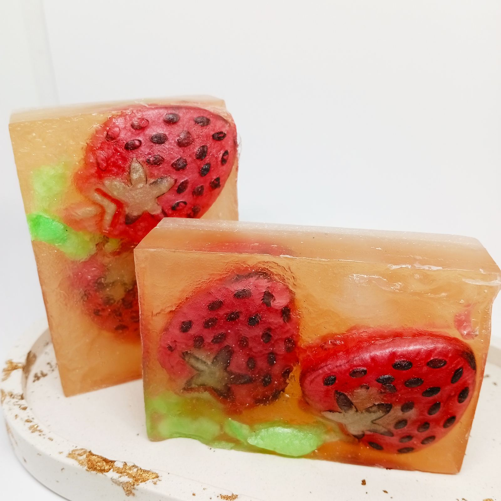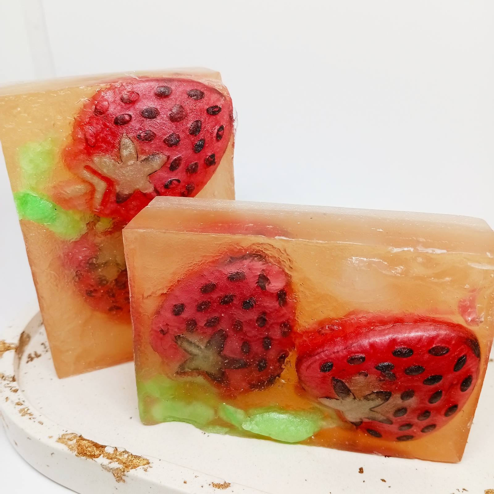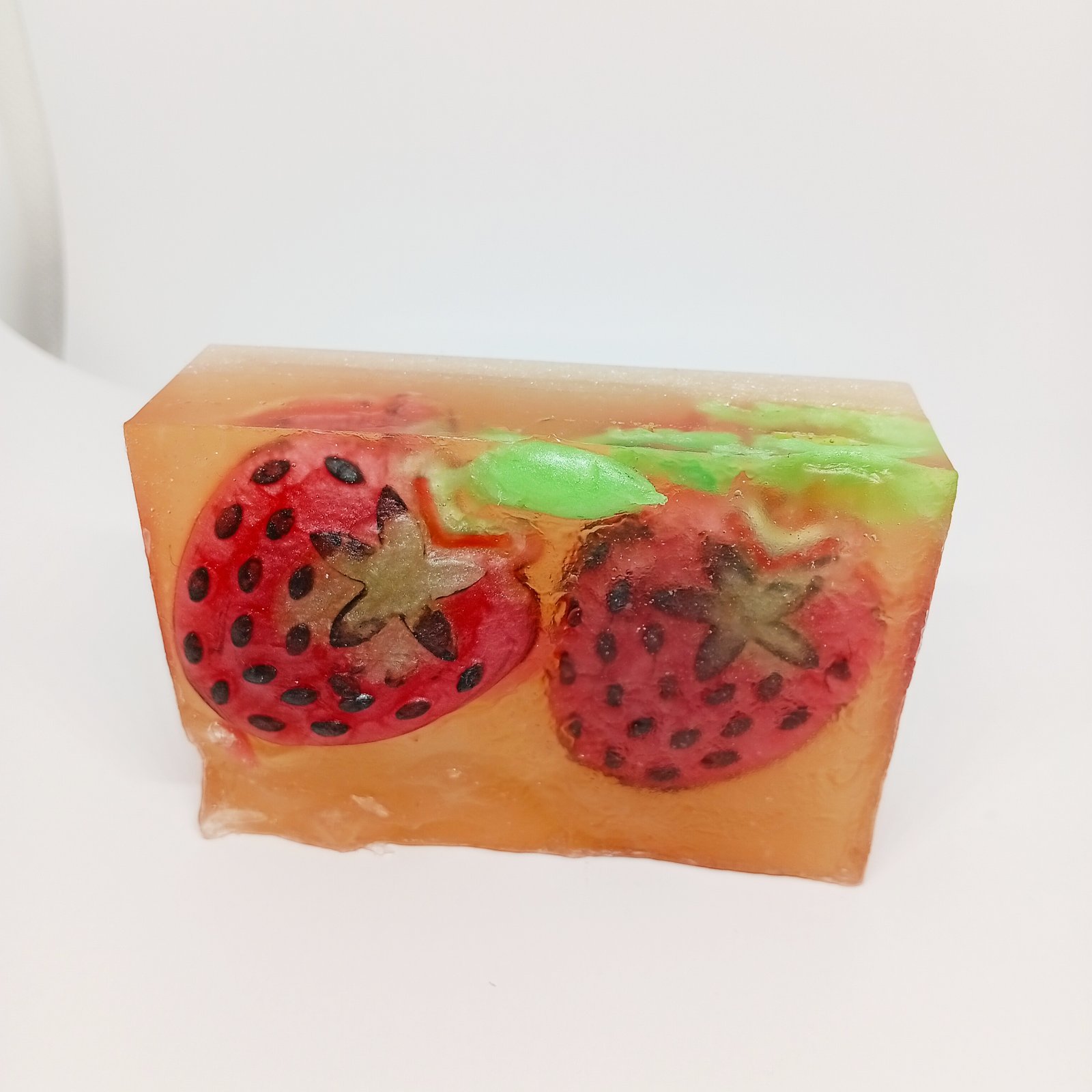 Χειροποίητο Σαπούνι με φυτική γλυκερίνη με σχέδιο φράουλες ιδανικό για κάθε ηλικία.
